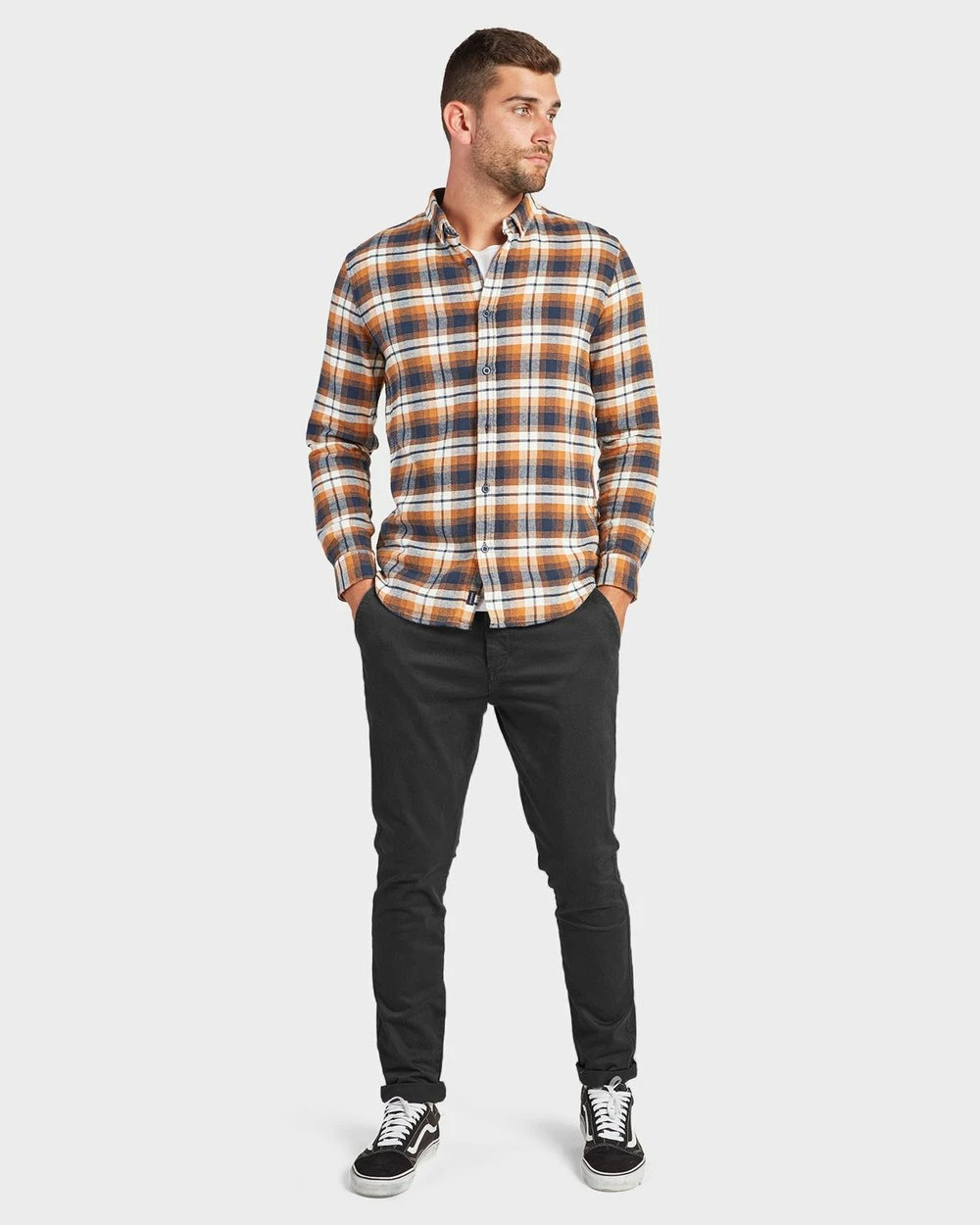 The Skinny Stretch Chino with a cotton sateen finish and perfect amount of stretch. These are an Academy Brand favourite that sit just below the waist with a narrow fit through to the thighs, and skinny fit from knee to hem opening. The perfect all round chino.