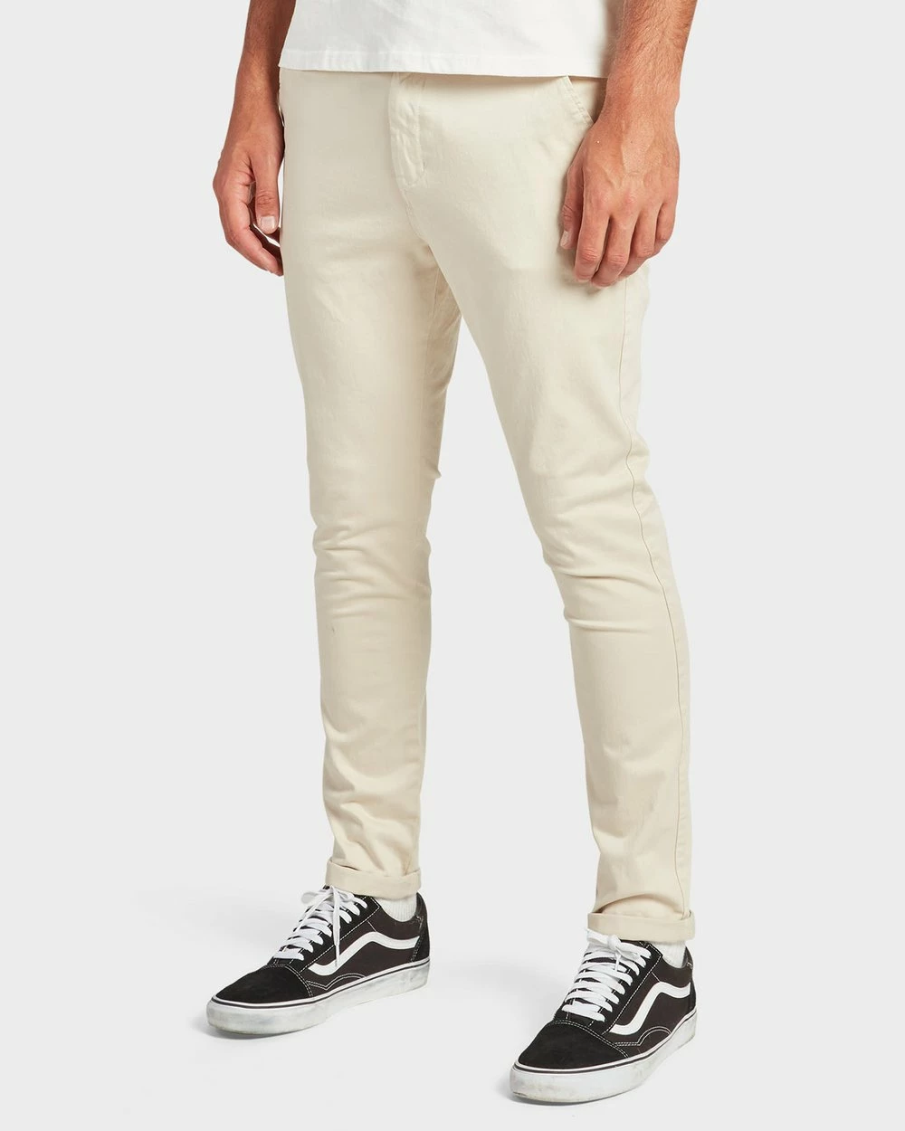 The Skinny Stretch Chino with a cotton sateen finish and perfect amount of stretch. These are an Academy Brand favourite that sit just below the waist with a narrow fit through to the thighs, and skinny fit from knee to hem opening. The perfect all round chino.