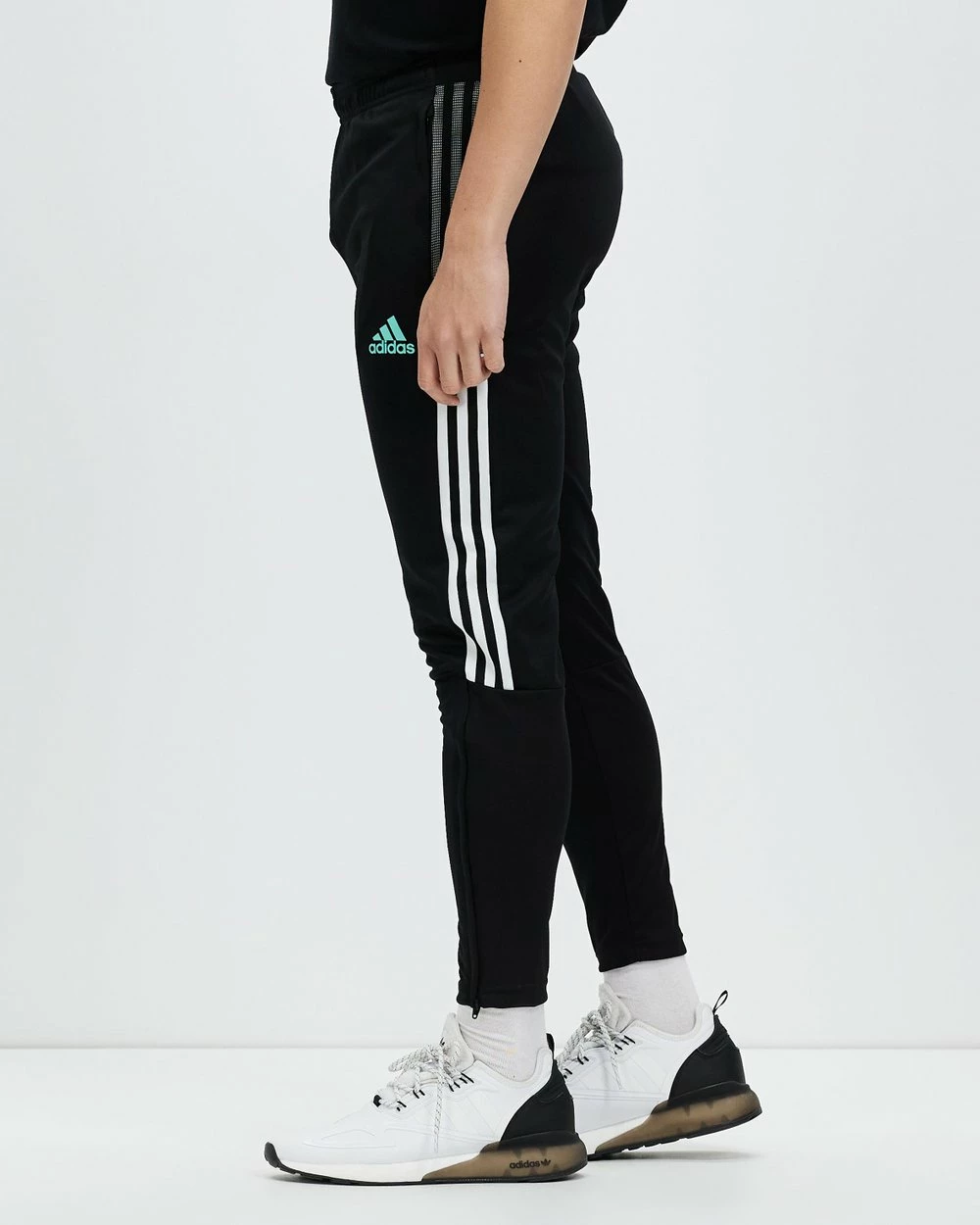 – Ribbed lower legs with ankle zips