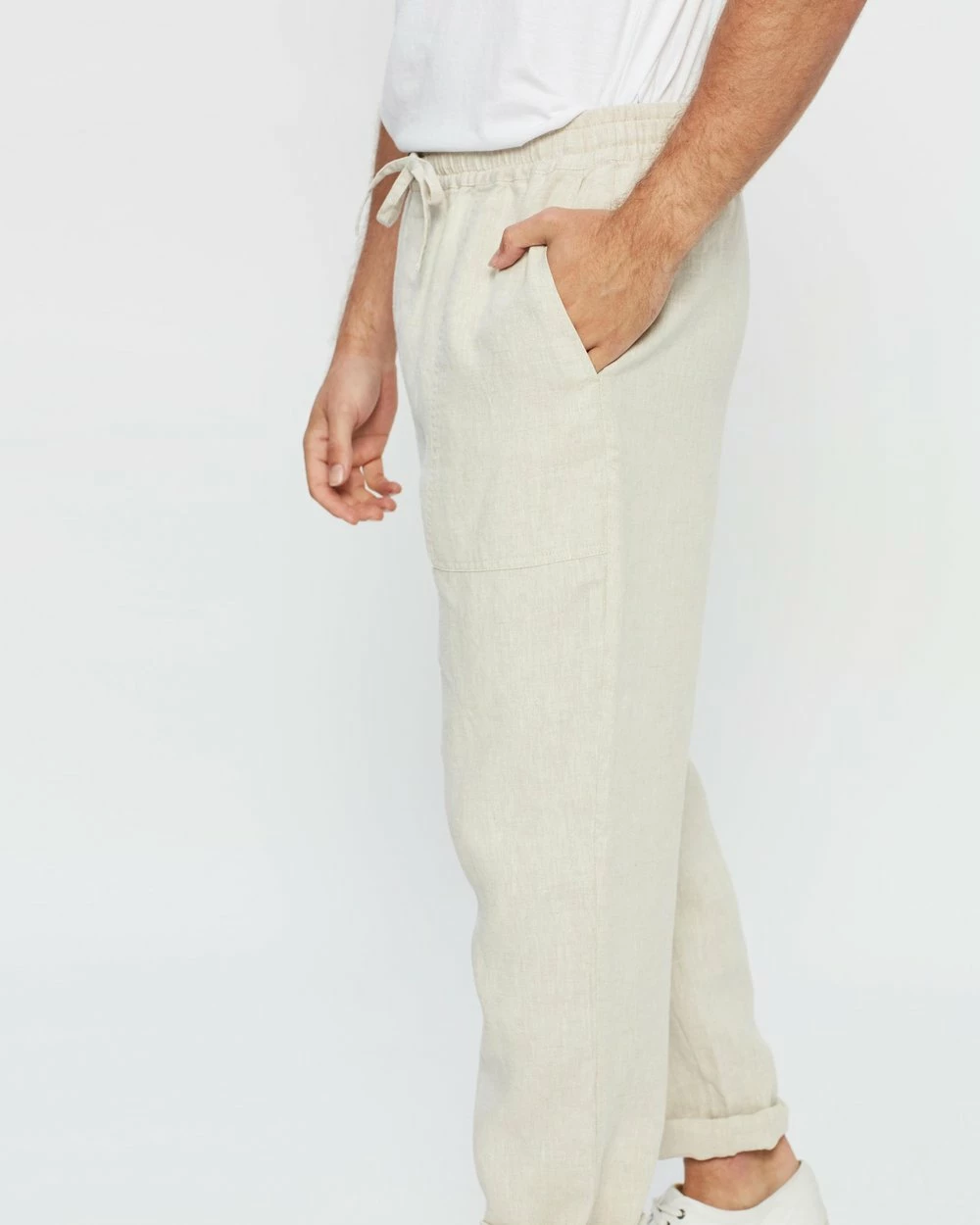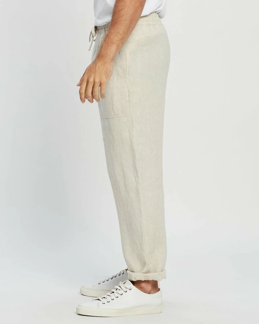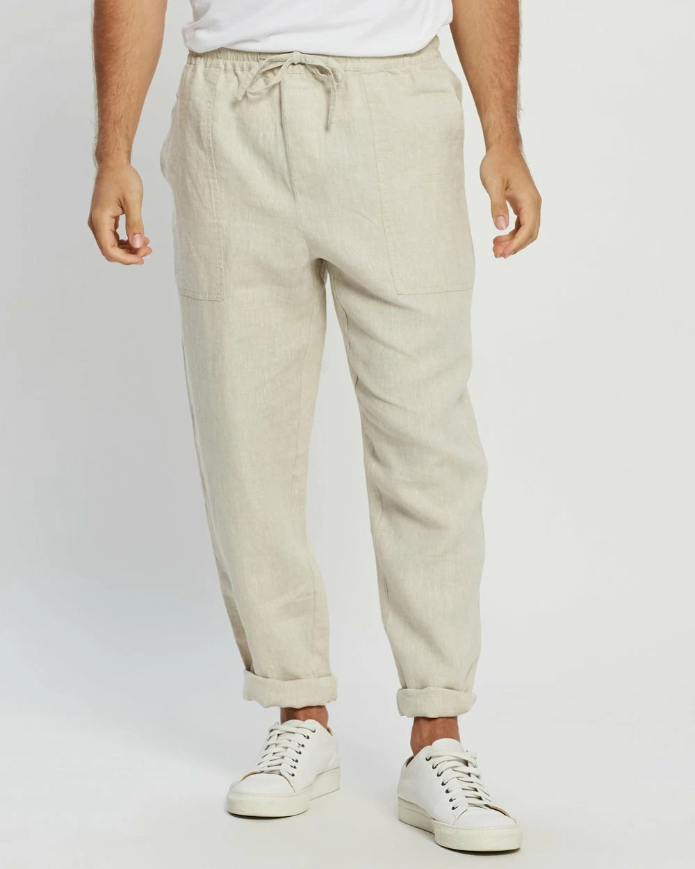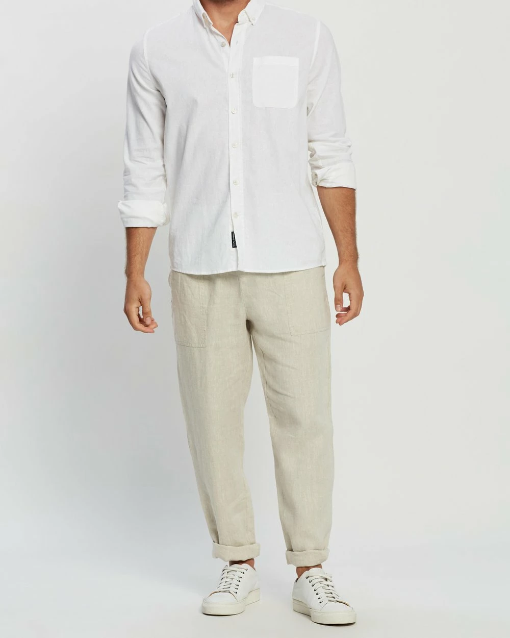 with everything from breezy linen button-downs to half-tucked jersey tees.