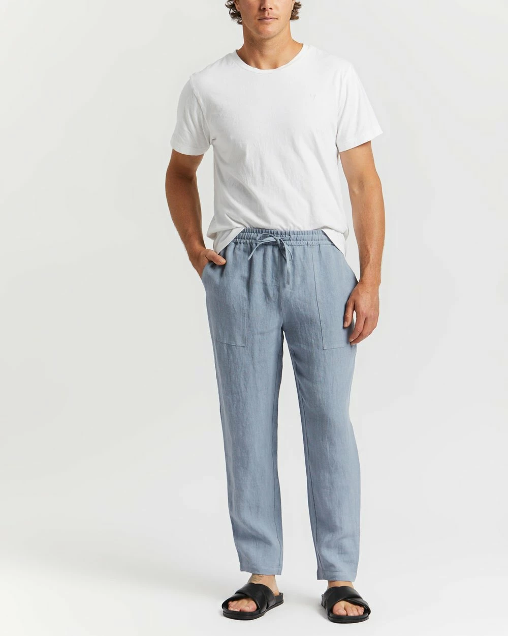 The Linen Pull On Pants by AERE radiate a sophisticated yet nonchalant style that instantly elevates the modern gentleman’s summer edit.