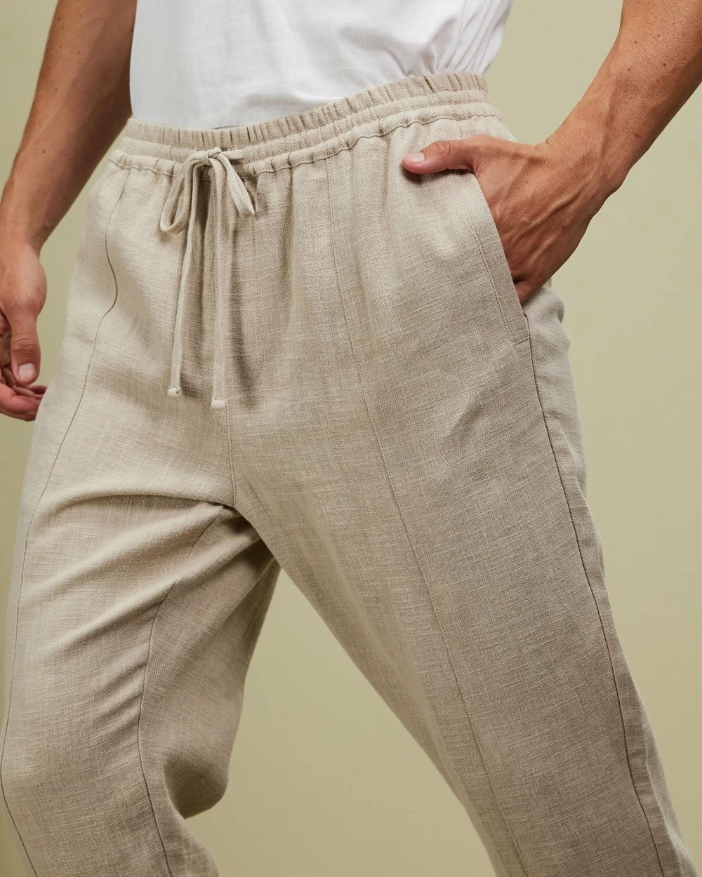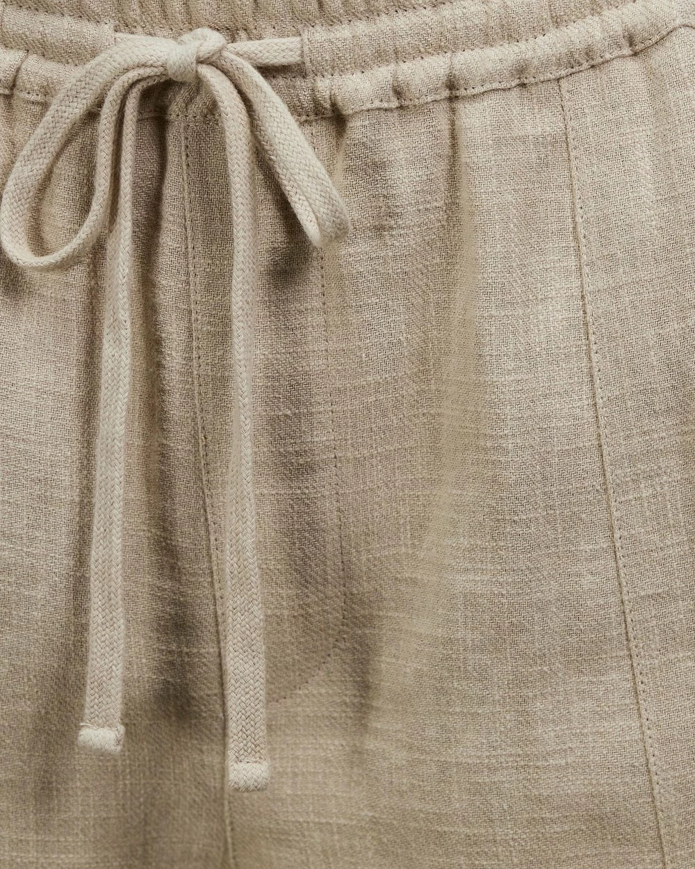– Lightweight ramie and cotton blend; lined pockets; opaque