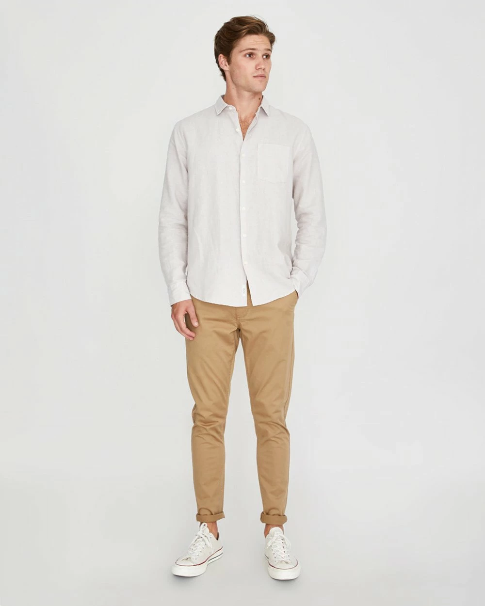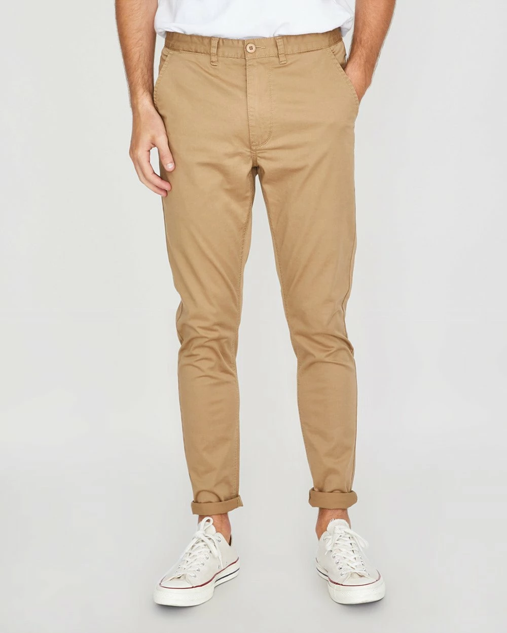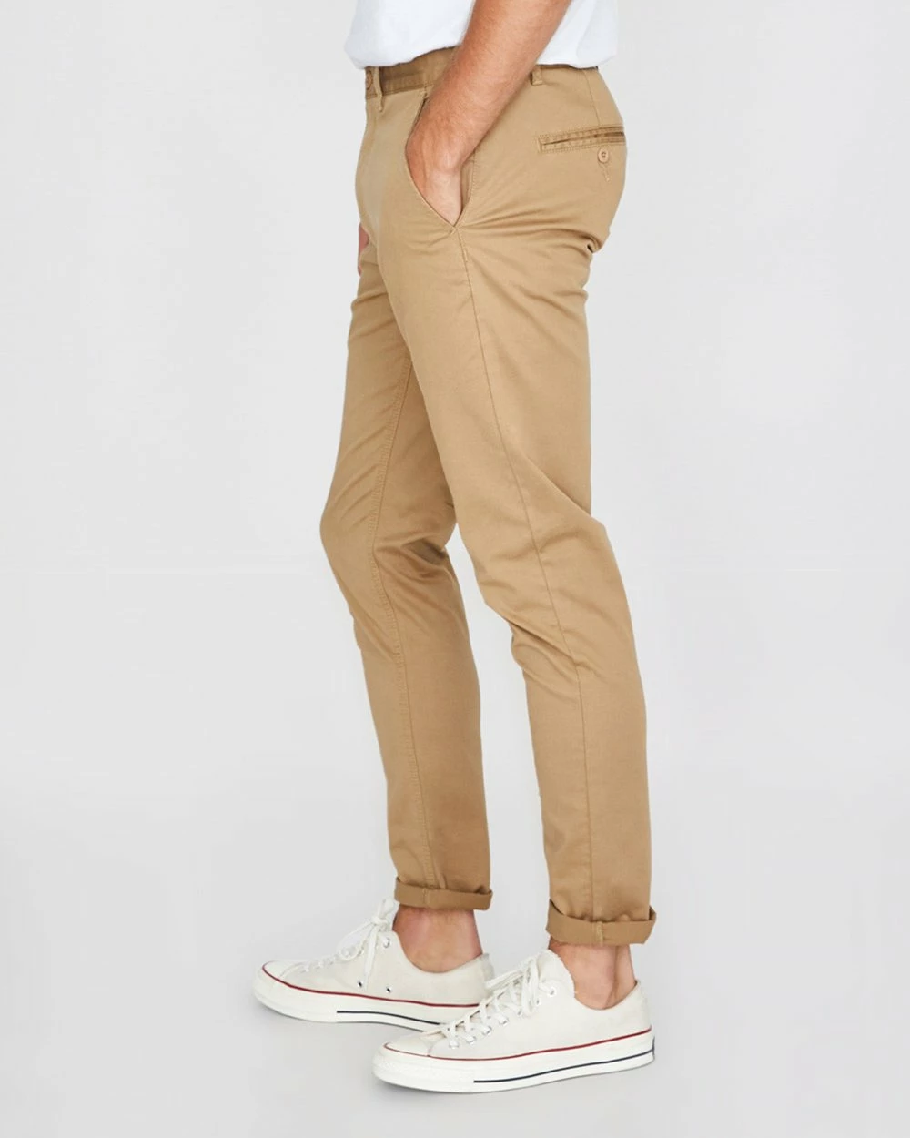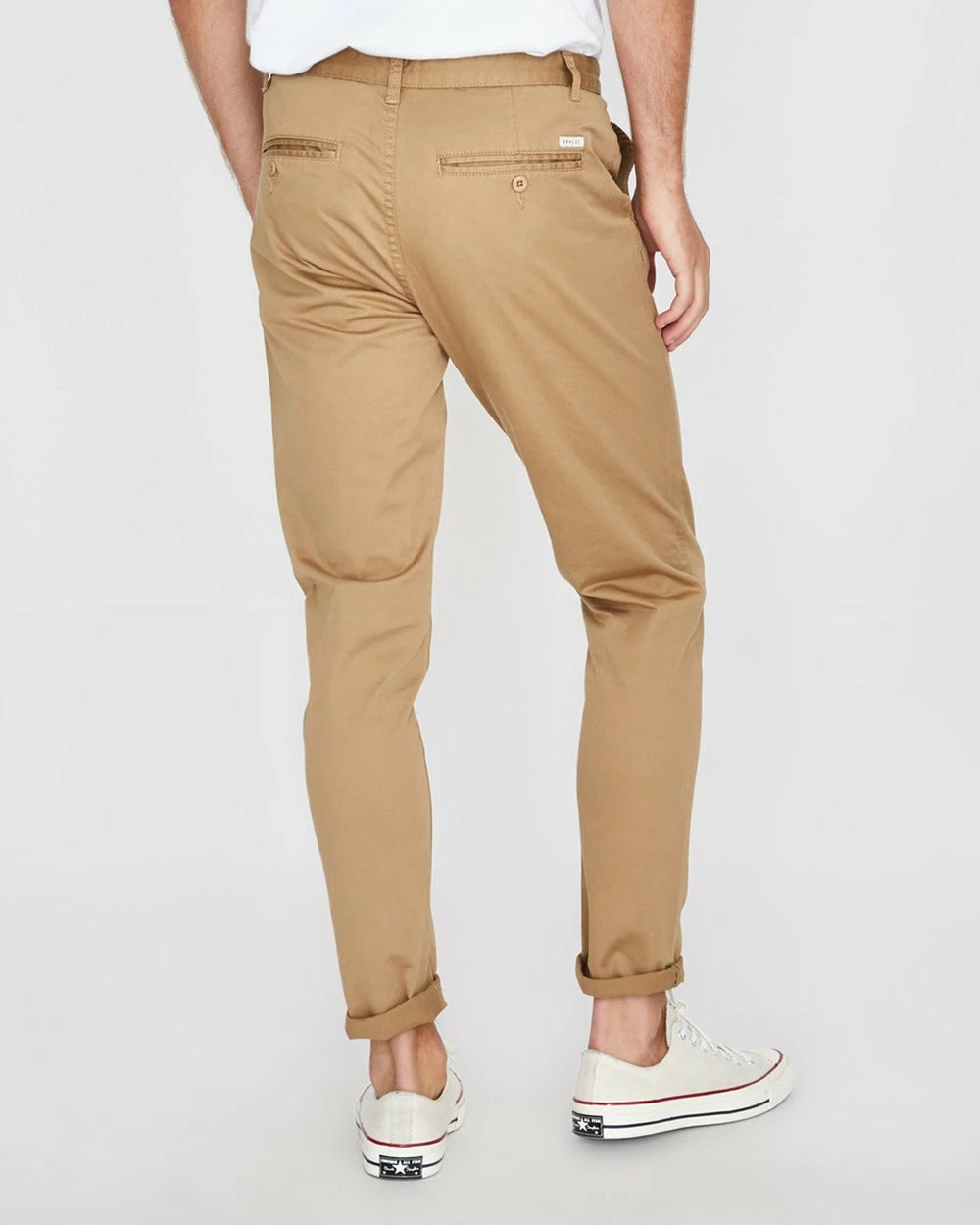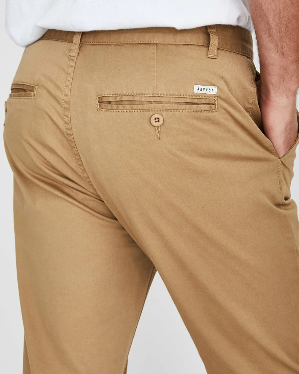 Comfort alert. The Arvust Hoxton Chinos are perhaps going to become your best friend this summer. This style features a slim fit with front slip pockets and rear welt pockets finished with a button closure. Boasting belt loops for more formal occasions, these pants are a bit sneaky with a comfy cotton elastane blended fabrication and come in a tan colourway.