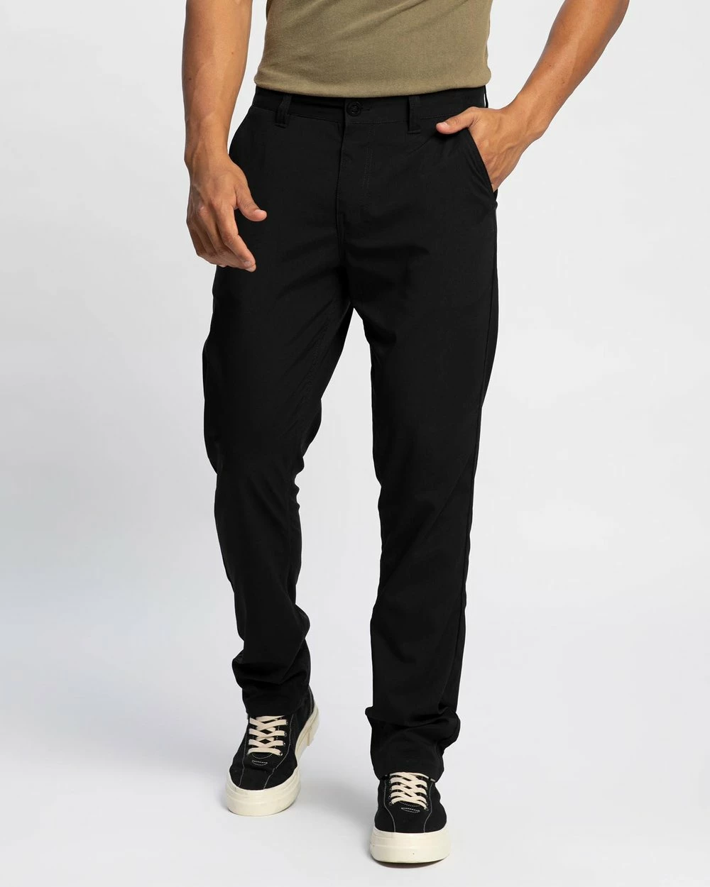 In a classic chino pants silhouette, the Choice Chino Taper X Pants by Brixton are cut from a classic black weave, with functional pockets to the sides and back.