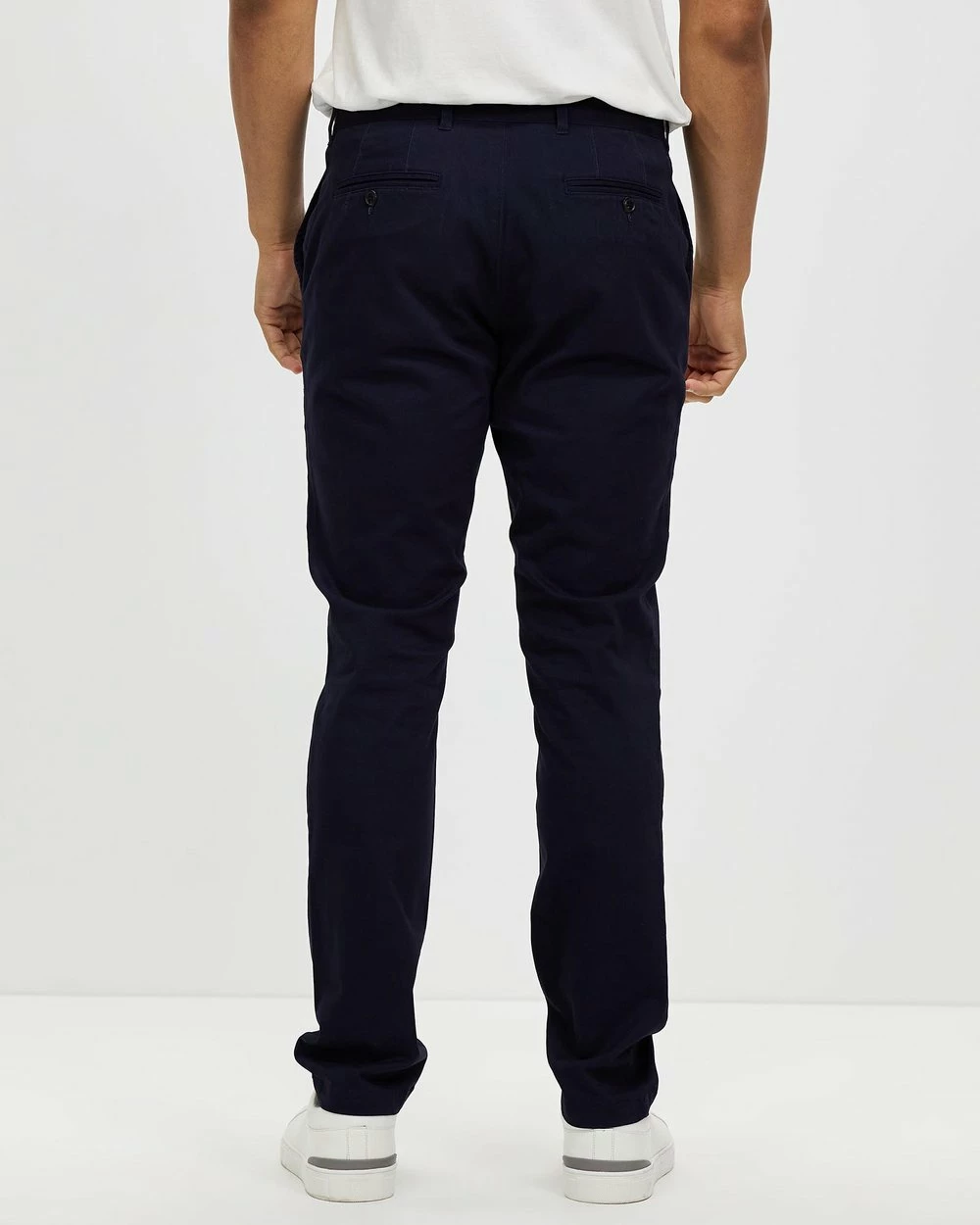 – Buttoned jet back pockets
