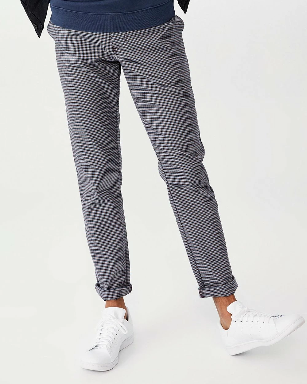 Bring a dose of dapper appeal to your everyday roster with Cotton On’s Skinny Stretch Chinos in preppy blue houndstooth.