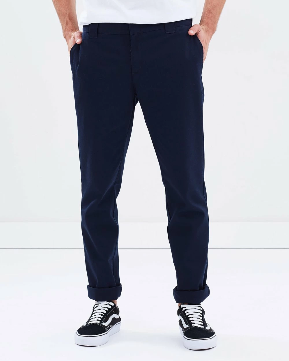 Simple yet classic, the 872 Slim Fit Straight Leg Pants by Dickies are a trans-seasonal staple. With a tailored look and a denim-feel fabric, the slim pants will match with everything in your wardrobe.