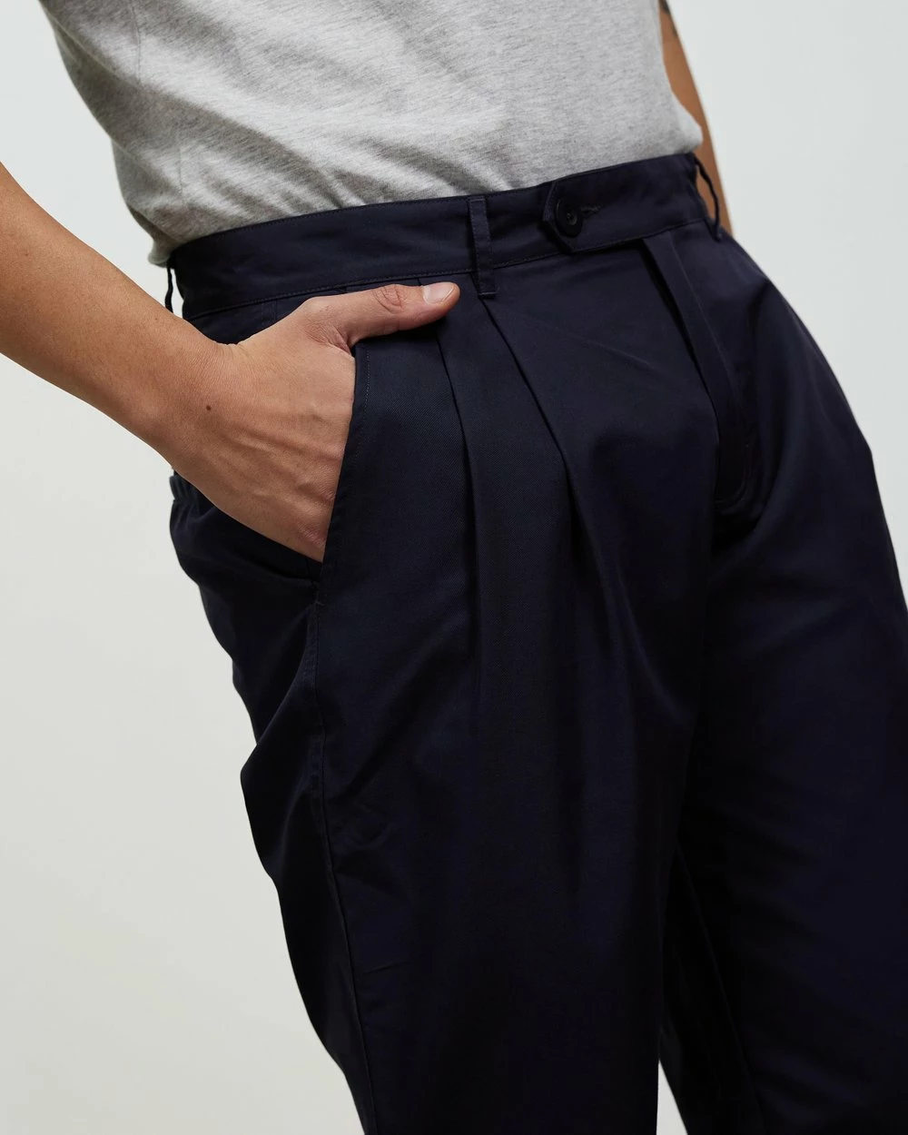 – Soft cotton-rich twill; minimal stretch; unlined; opaque
