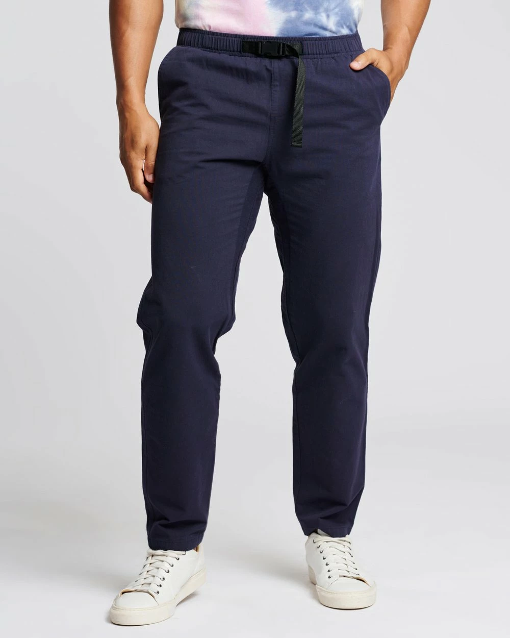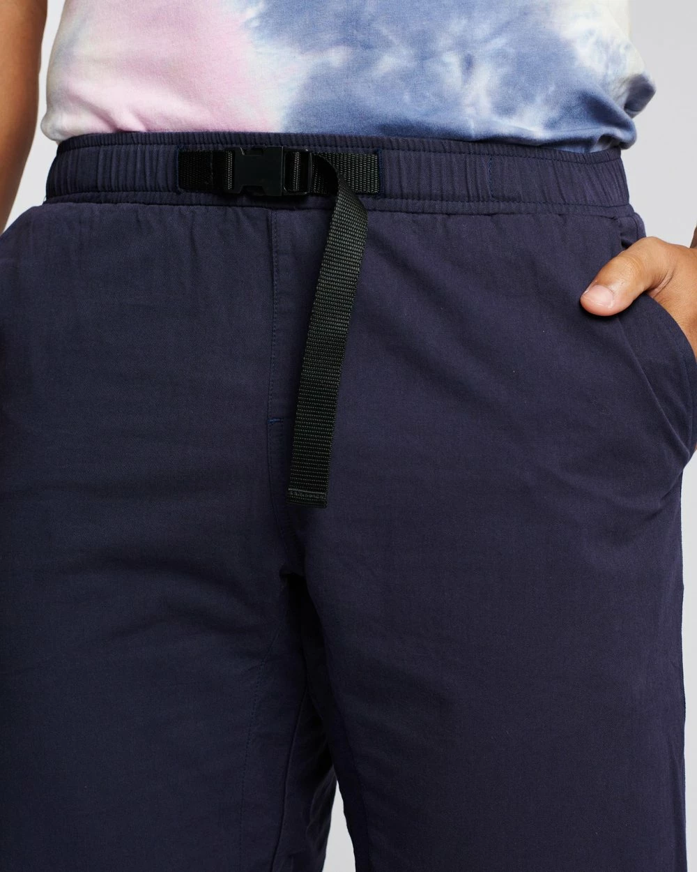 – Side-release buckle to elastic waist