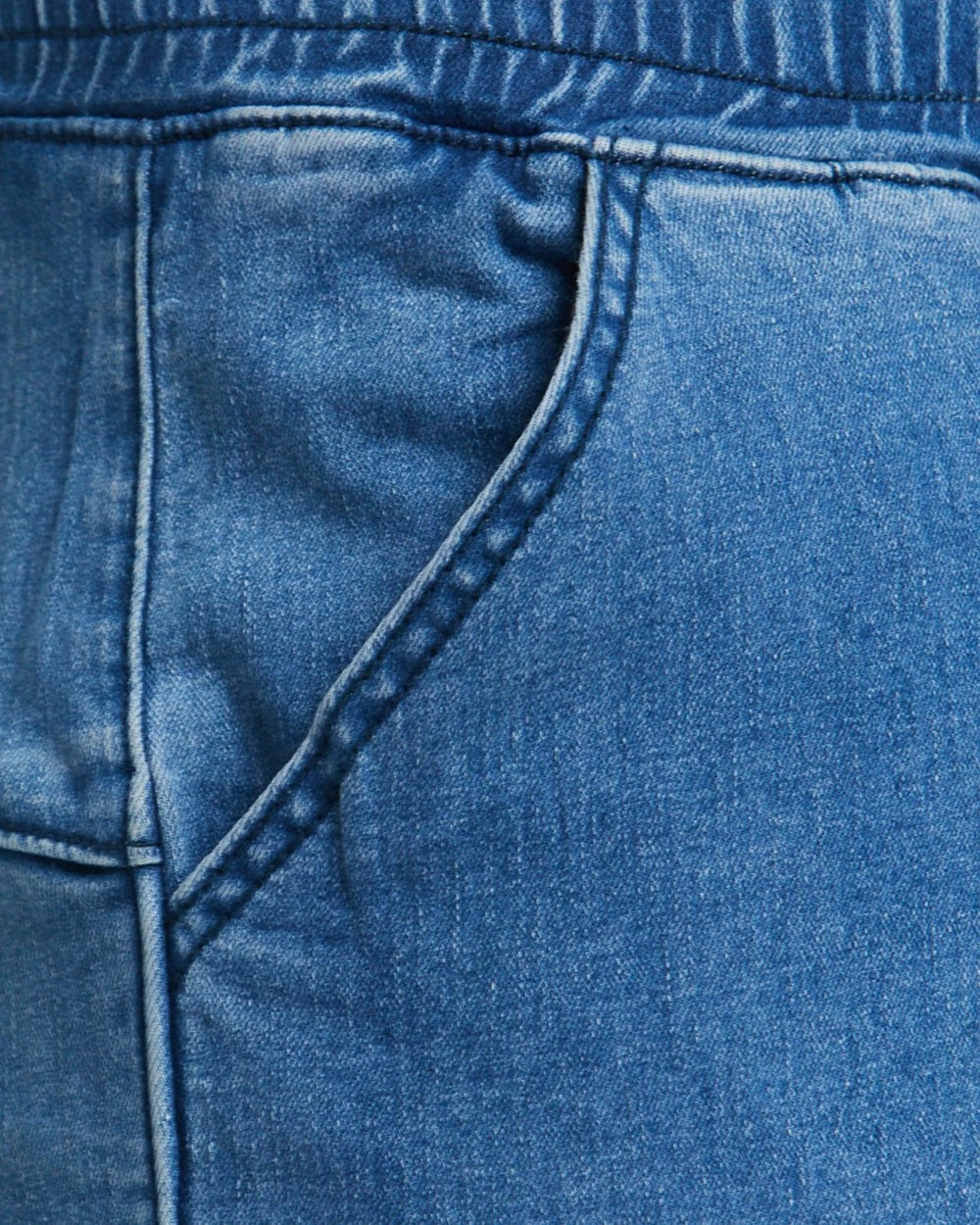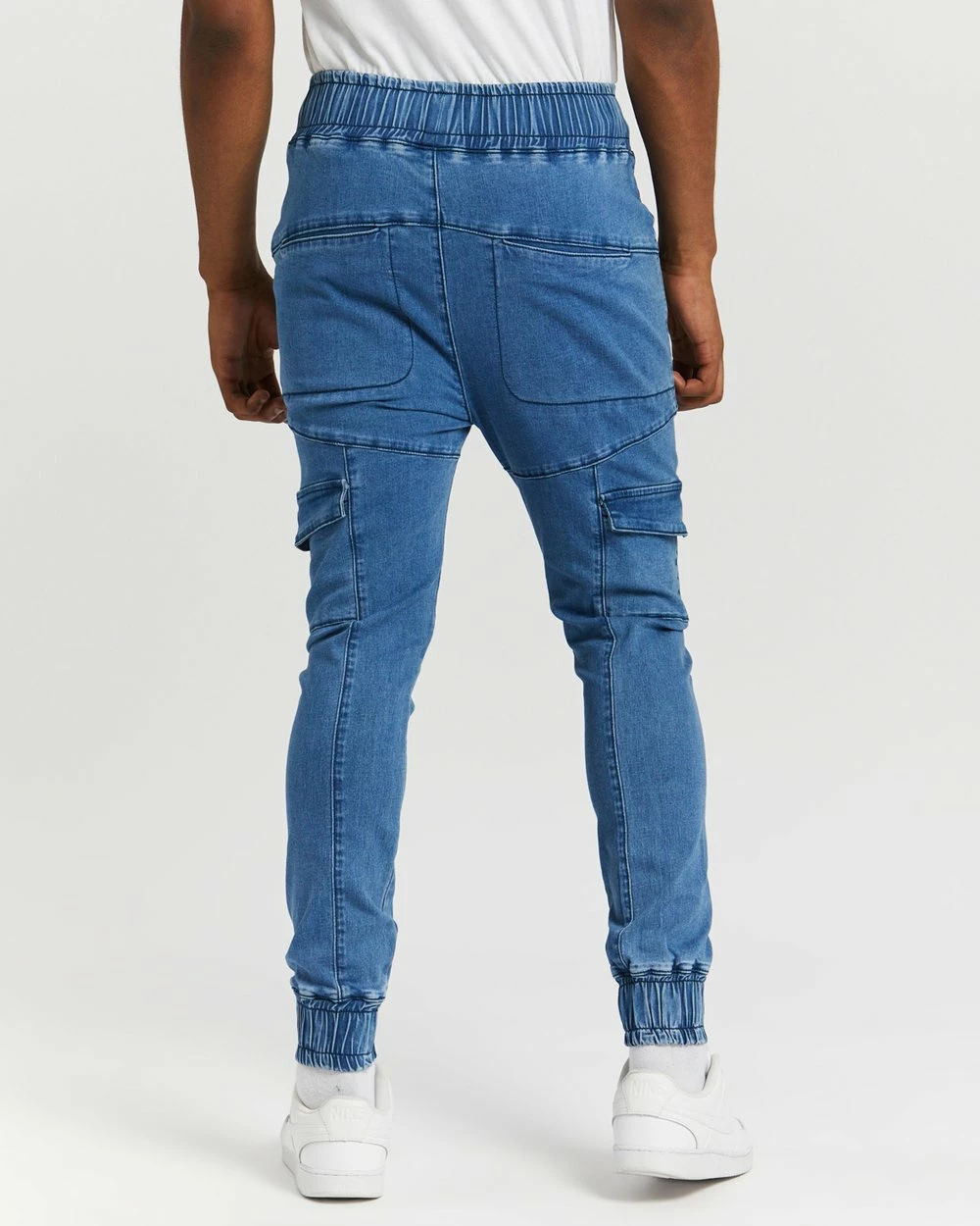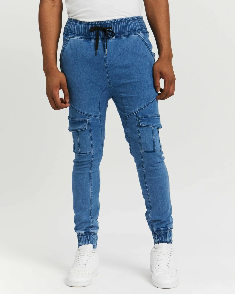 Skinny pants redefined with cargo pockets and elastic cuffs by Everloom, the Robbie Cargo Denim Joggers are perfect for an on-the-run day or lounging through the night.