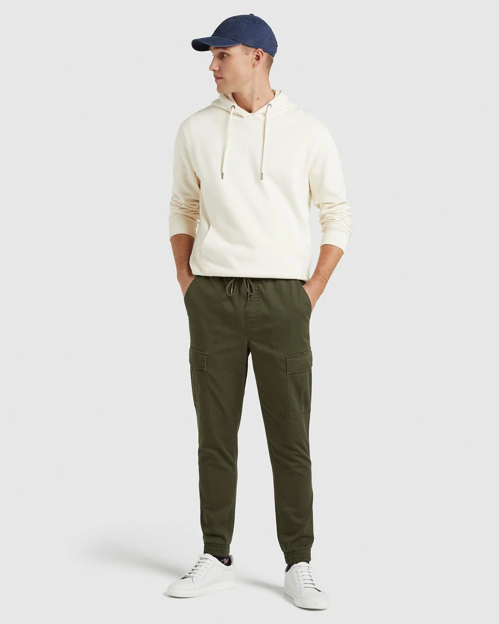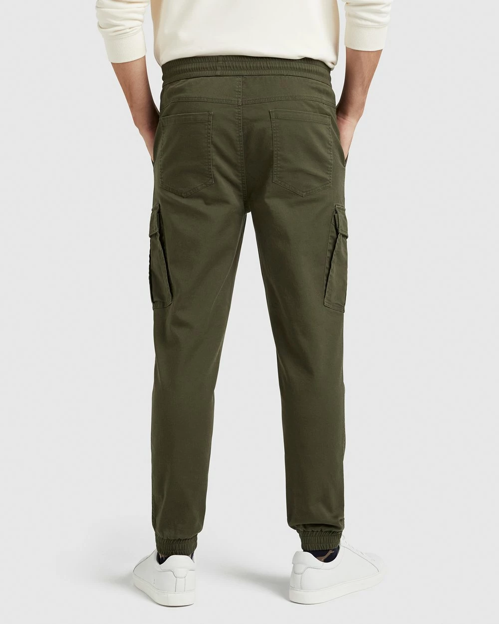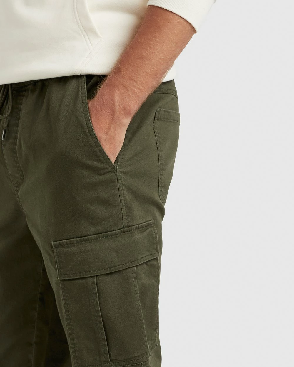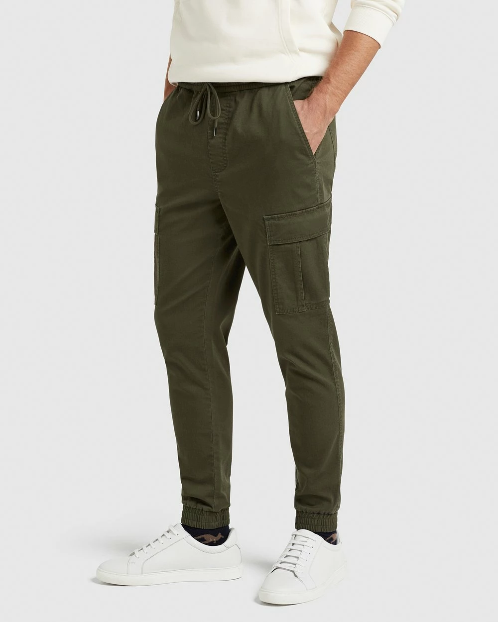 The Cargo Casual Pant by French Connection offers an on-trend, casual look. Made from a cotton blend with comfortable stretch, they have a relaxed fit with an elastic waist and pull cord, and utility detailing including back yoke, back patch pockets and leg pockets with stud closure.