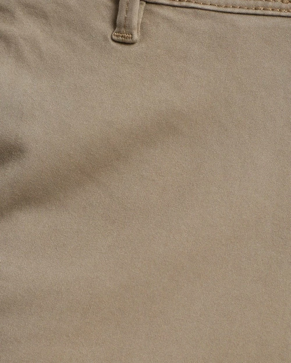 – Cotton-rich woven fabrication; slight added stretch; soft, brushed handle