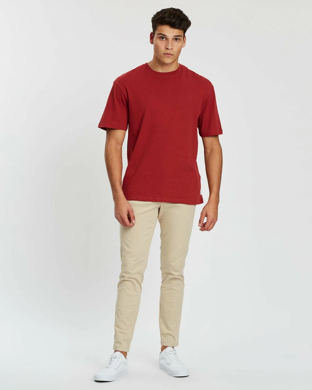 Our model is wearing size W32/L32 chinos. He is 188.0cm (6’2”) tall with a 99.1cm (39”) chest and a 80.0cm (31.5”) waist.