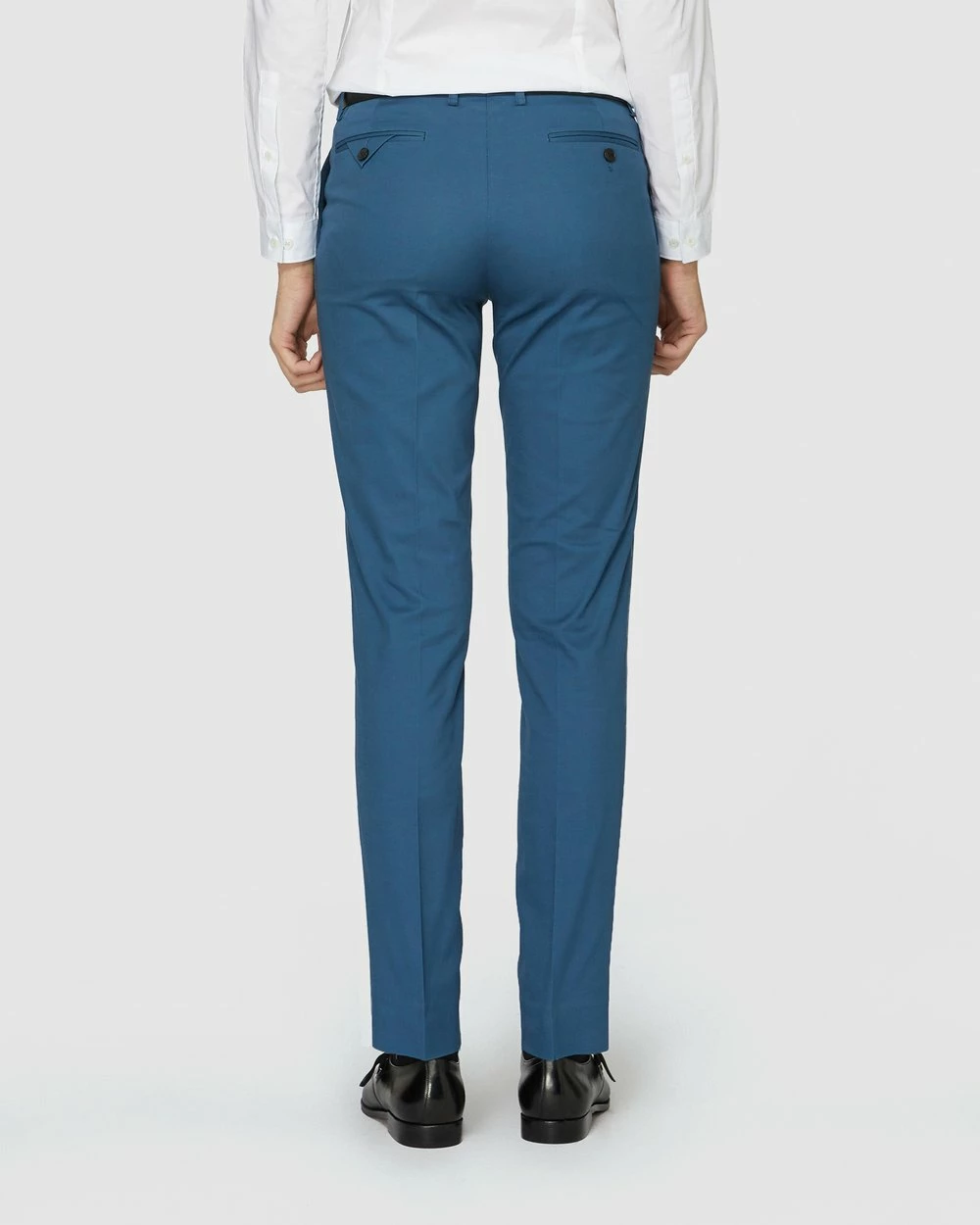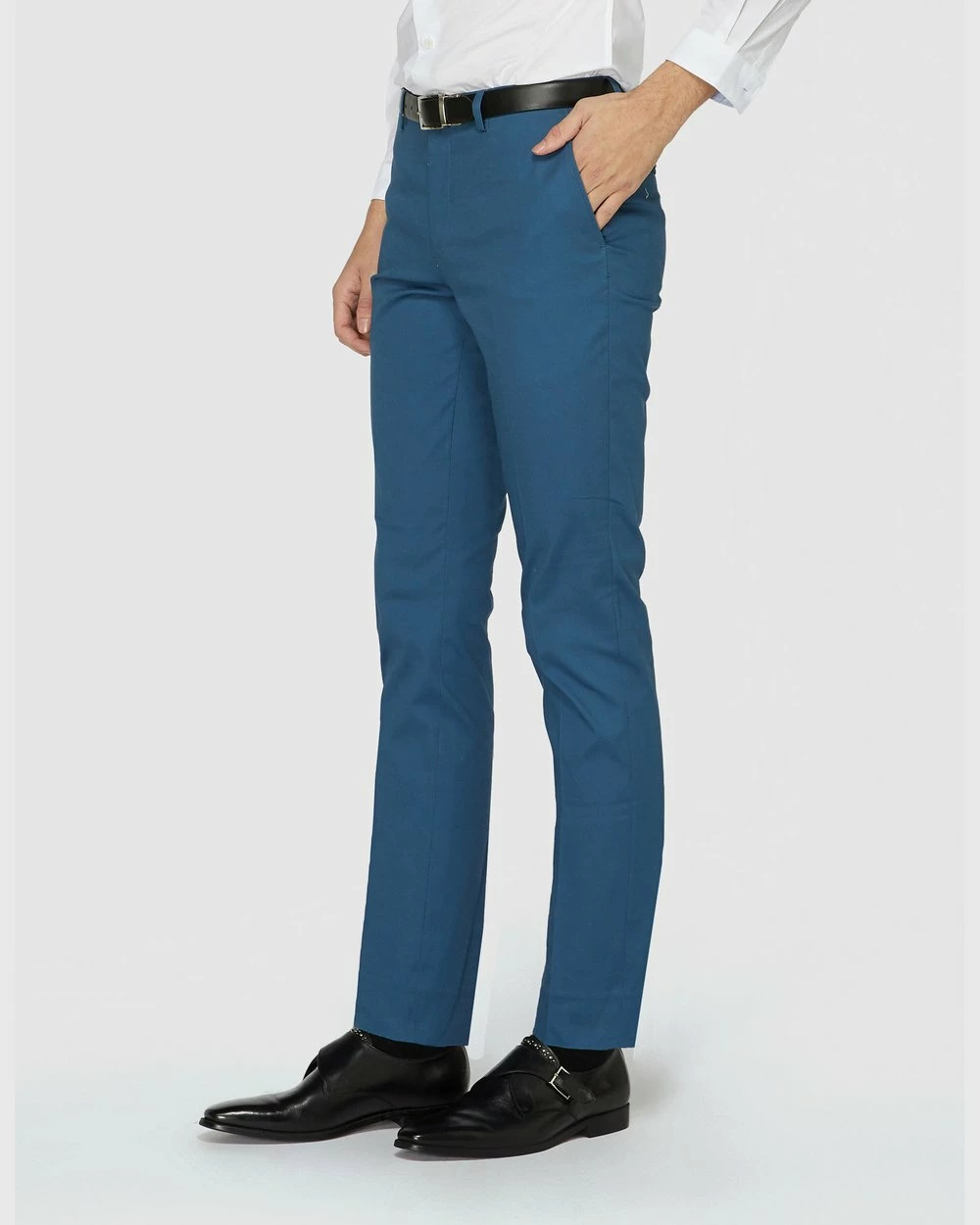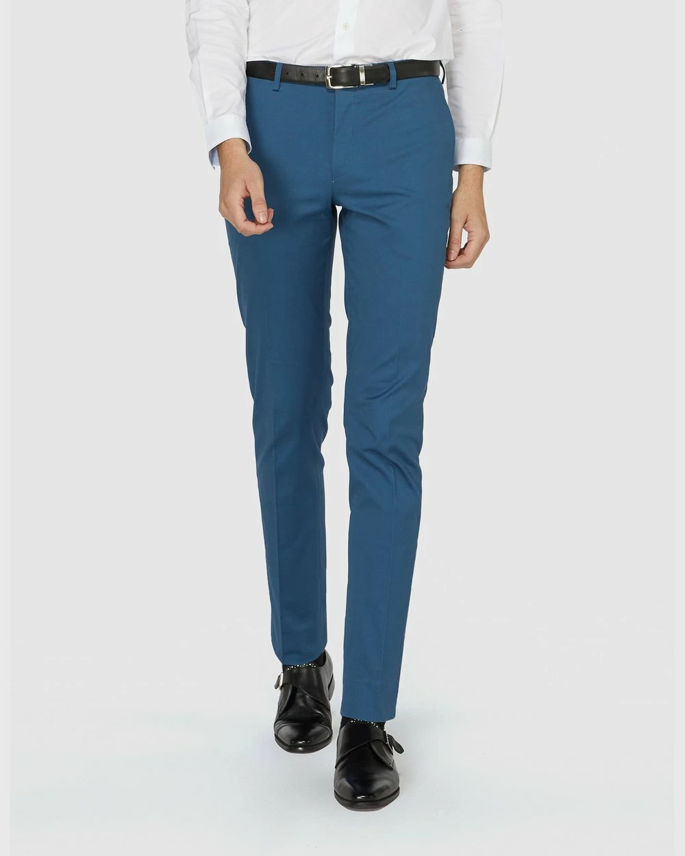The Petrol Dress Chinos by Jack London are petrol coloured chinos. This pair of pants has a zip fly with button fastening, rear jet pockets, cuffed hems, angled front pockets and are expertly finished with soft tonal lining.