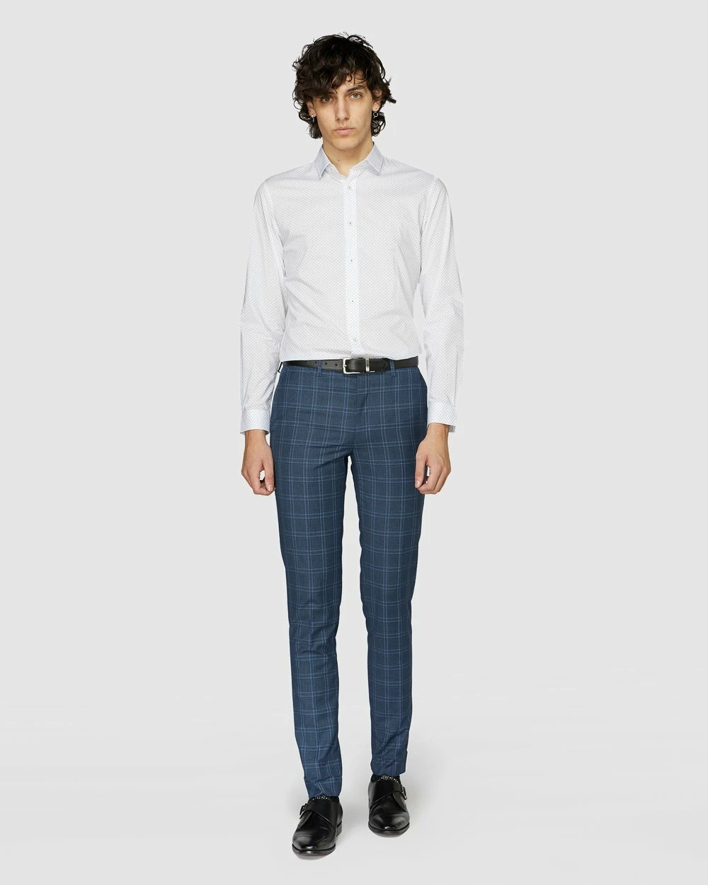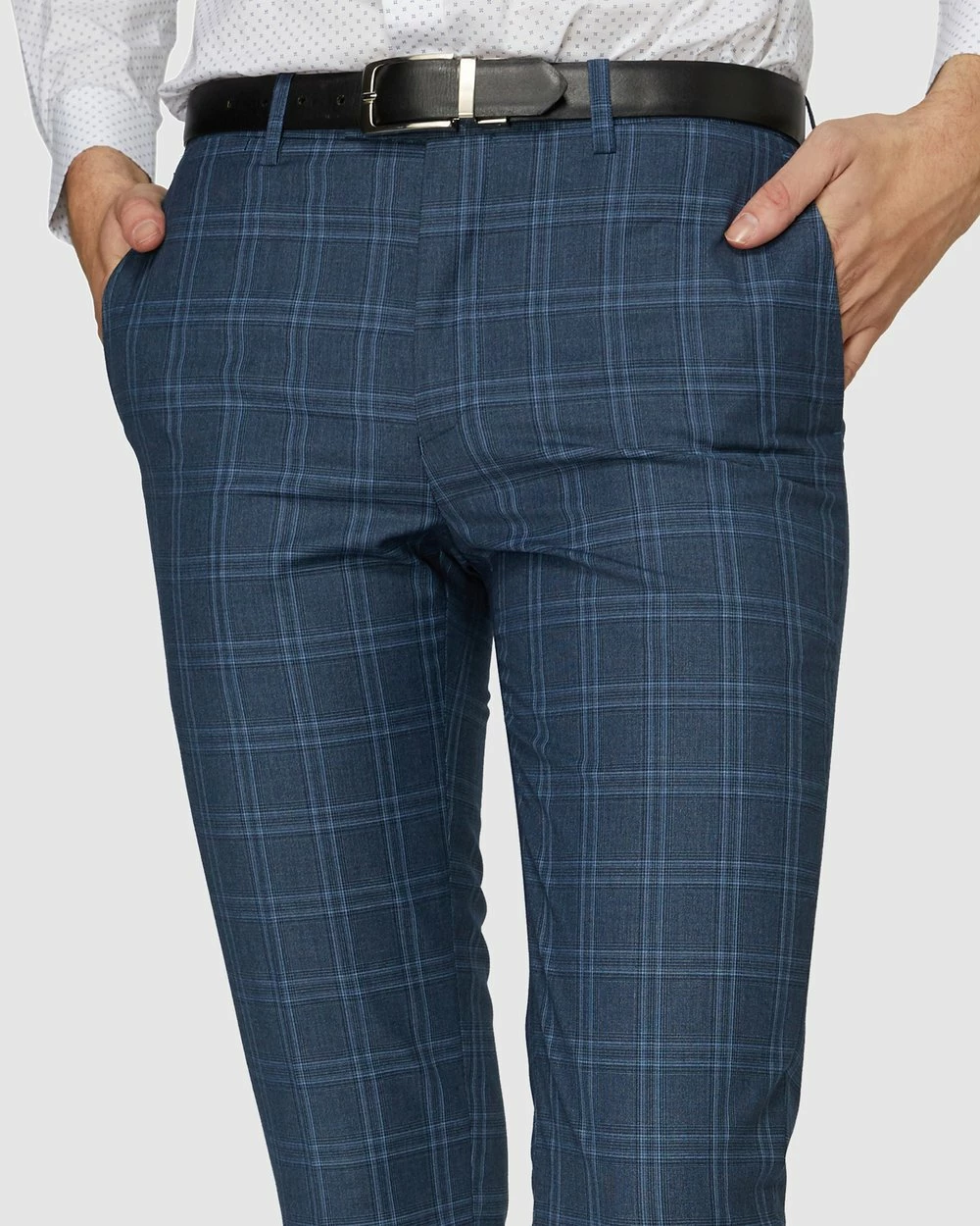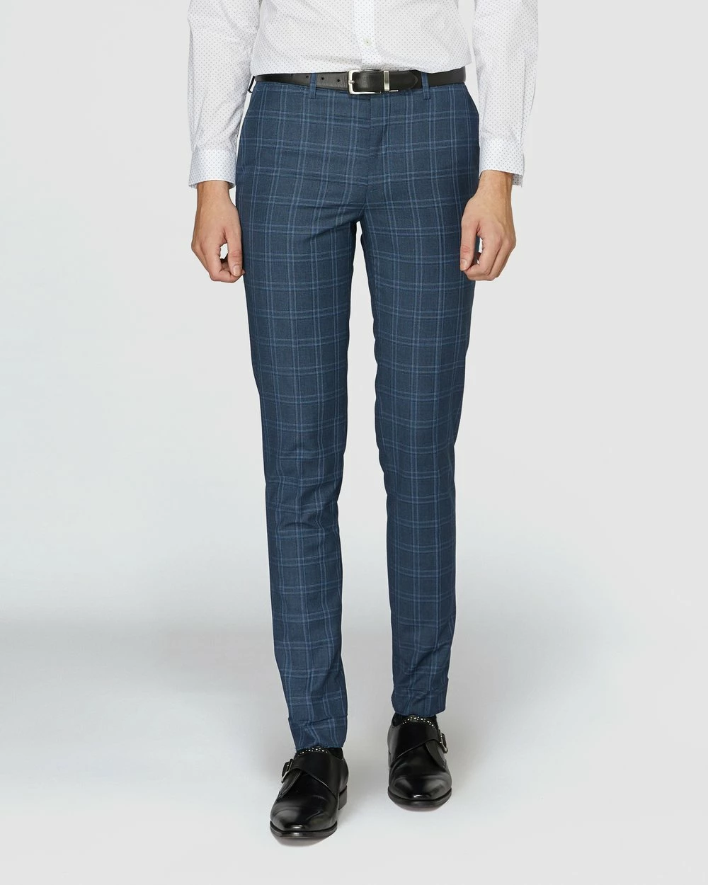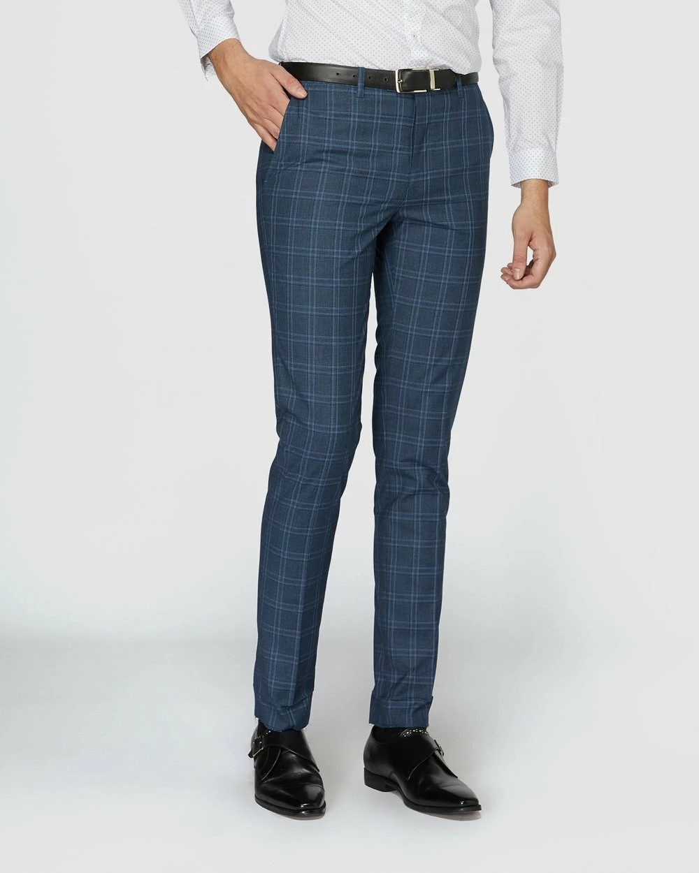 The Richards Suit Pants by Jack London are slim fitting check suit pants. These pants feature rear jet pockets, finished hems, a soft tonal lining, flattering slim fit and angled front pockets.