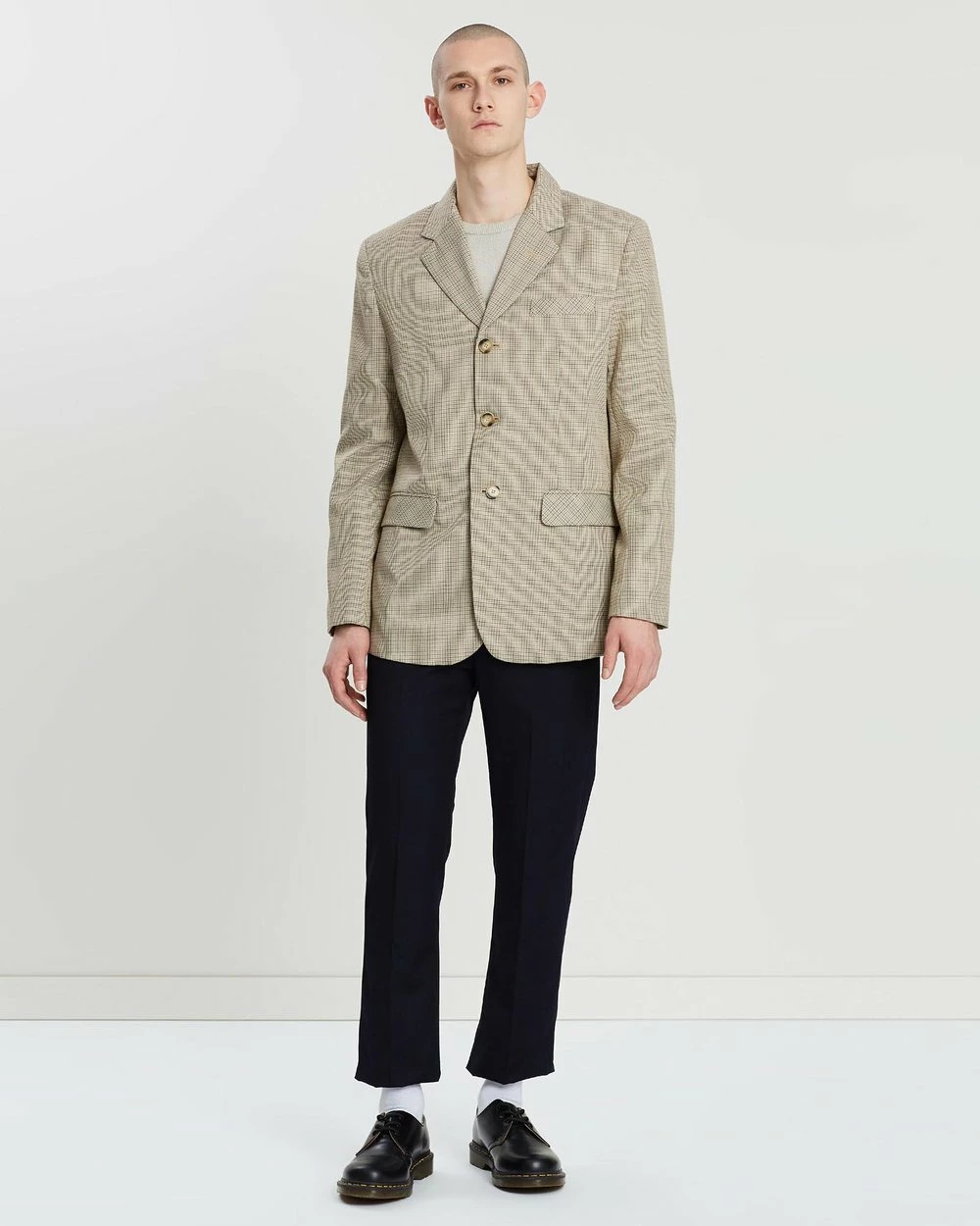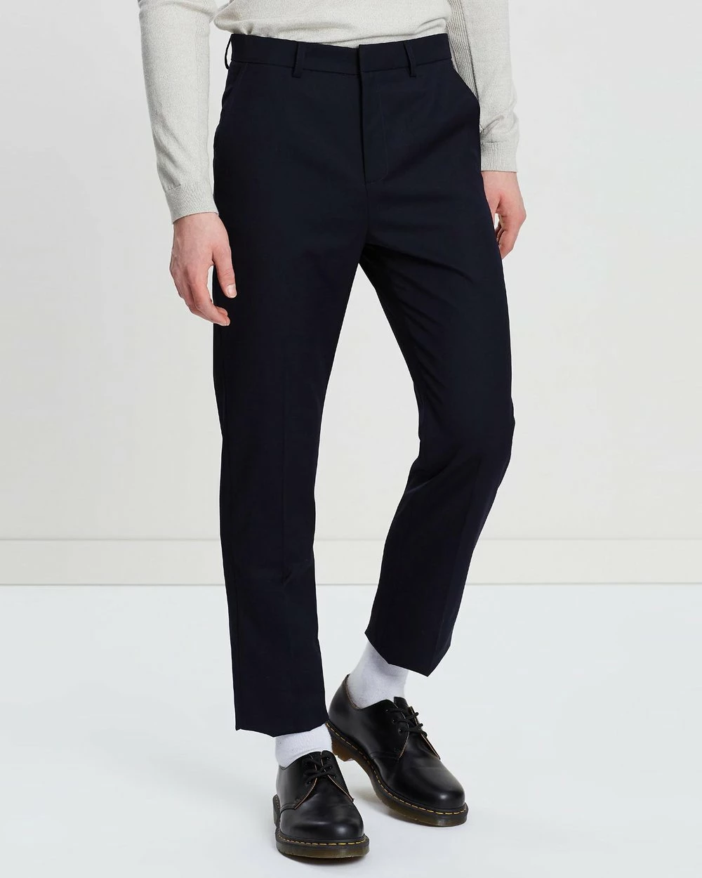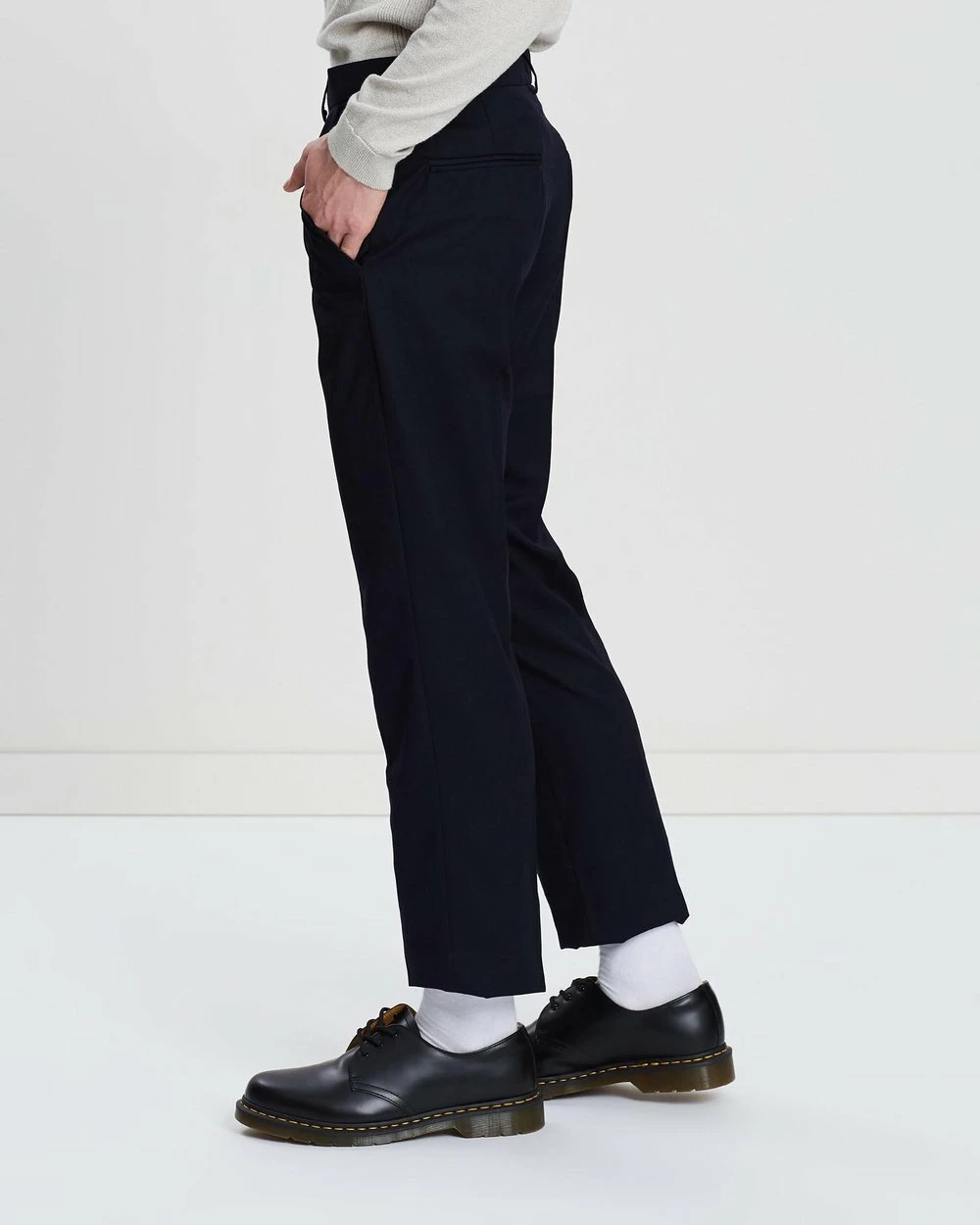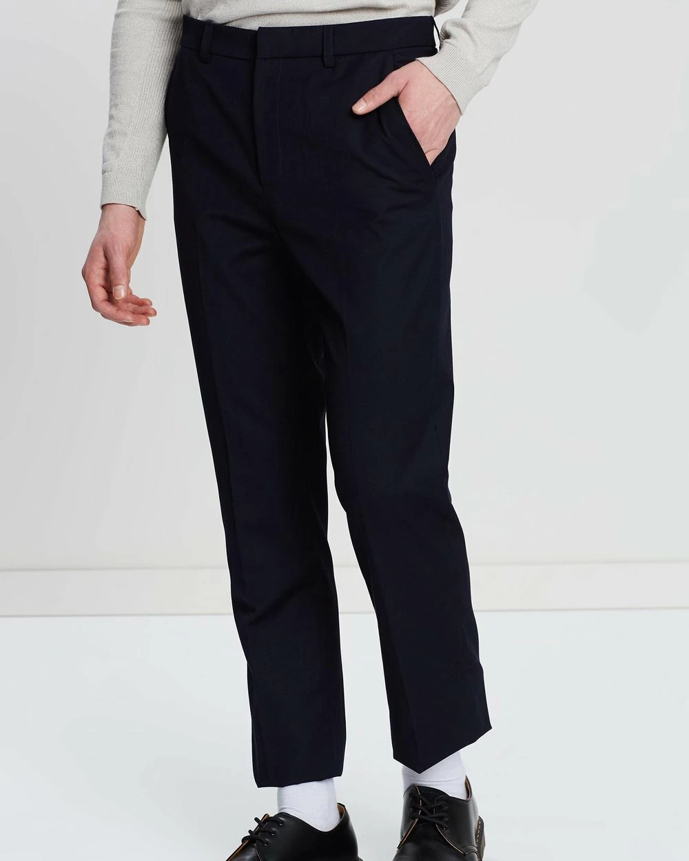 LA-based menswear label Justin Cassin offers a sleek desk to date-night pair with the twill Punch Pants, finished with pressed creases for a timeless, tailored look.