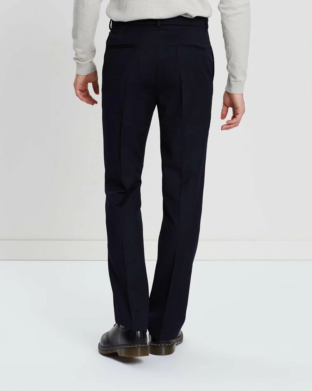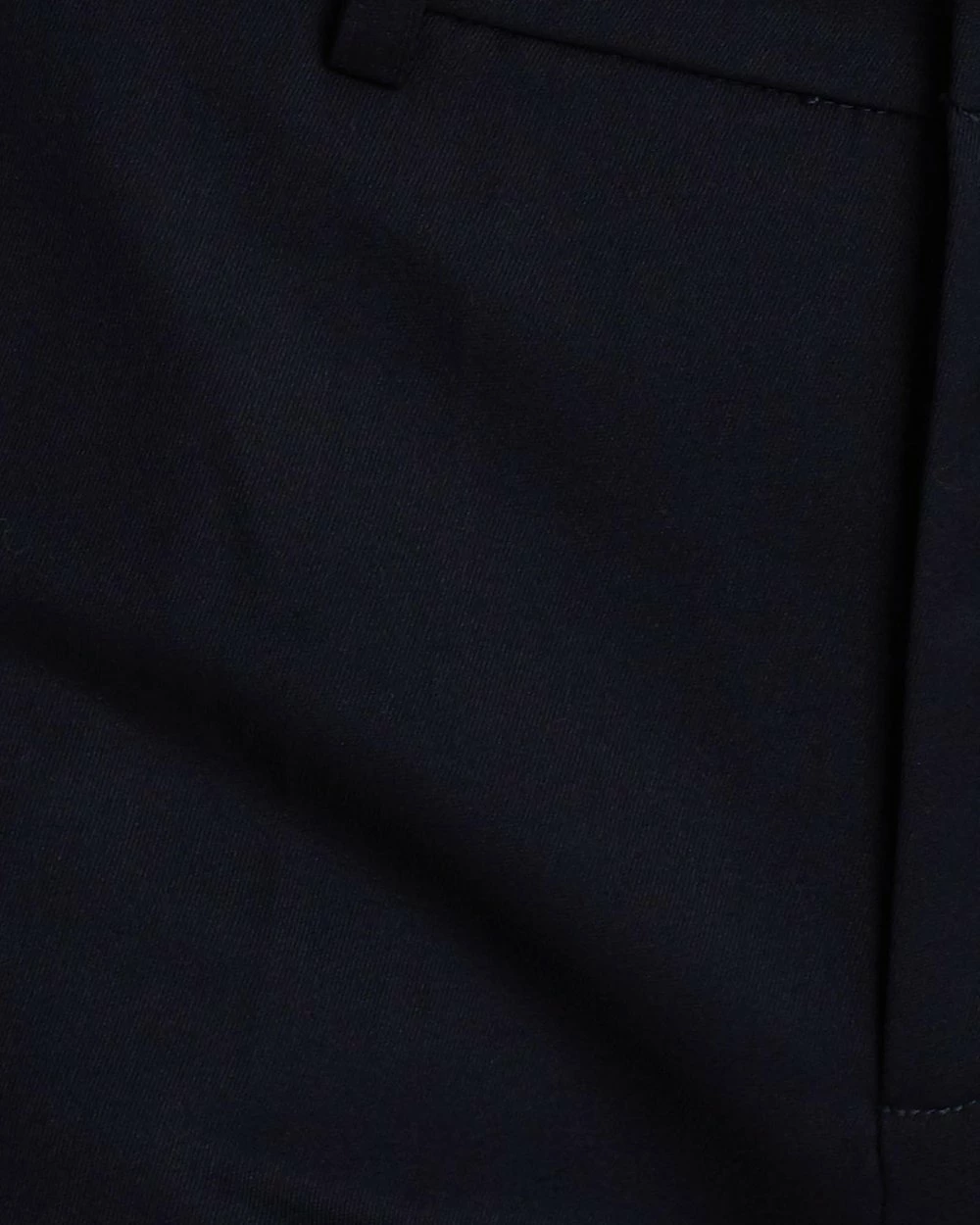 – Durable wool-blend twill; non-stretch; unlined; opaque