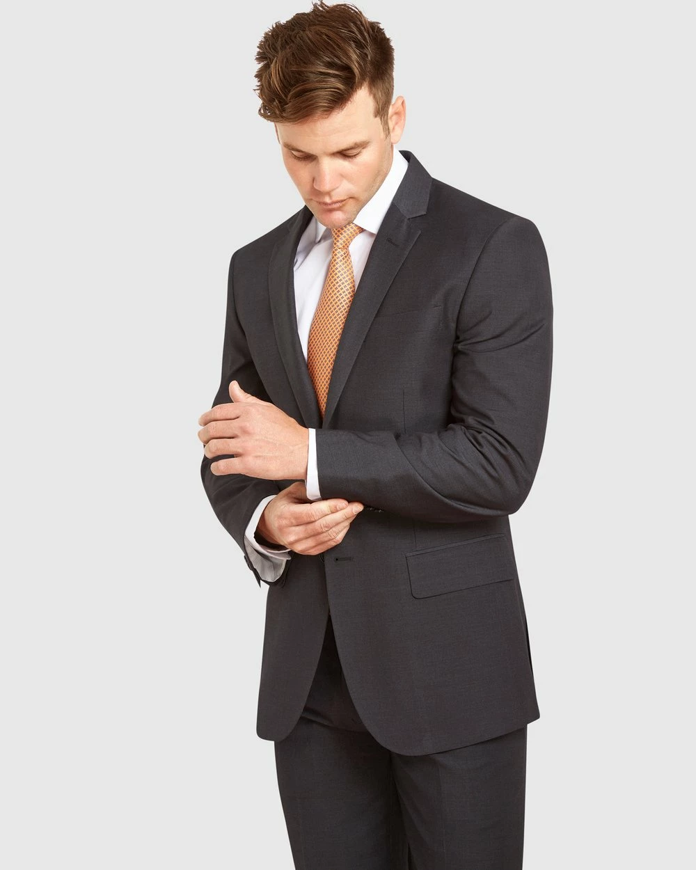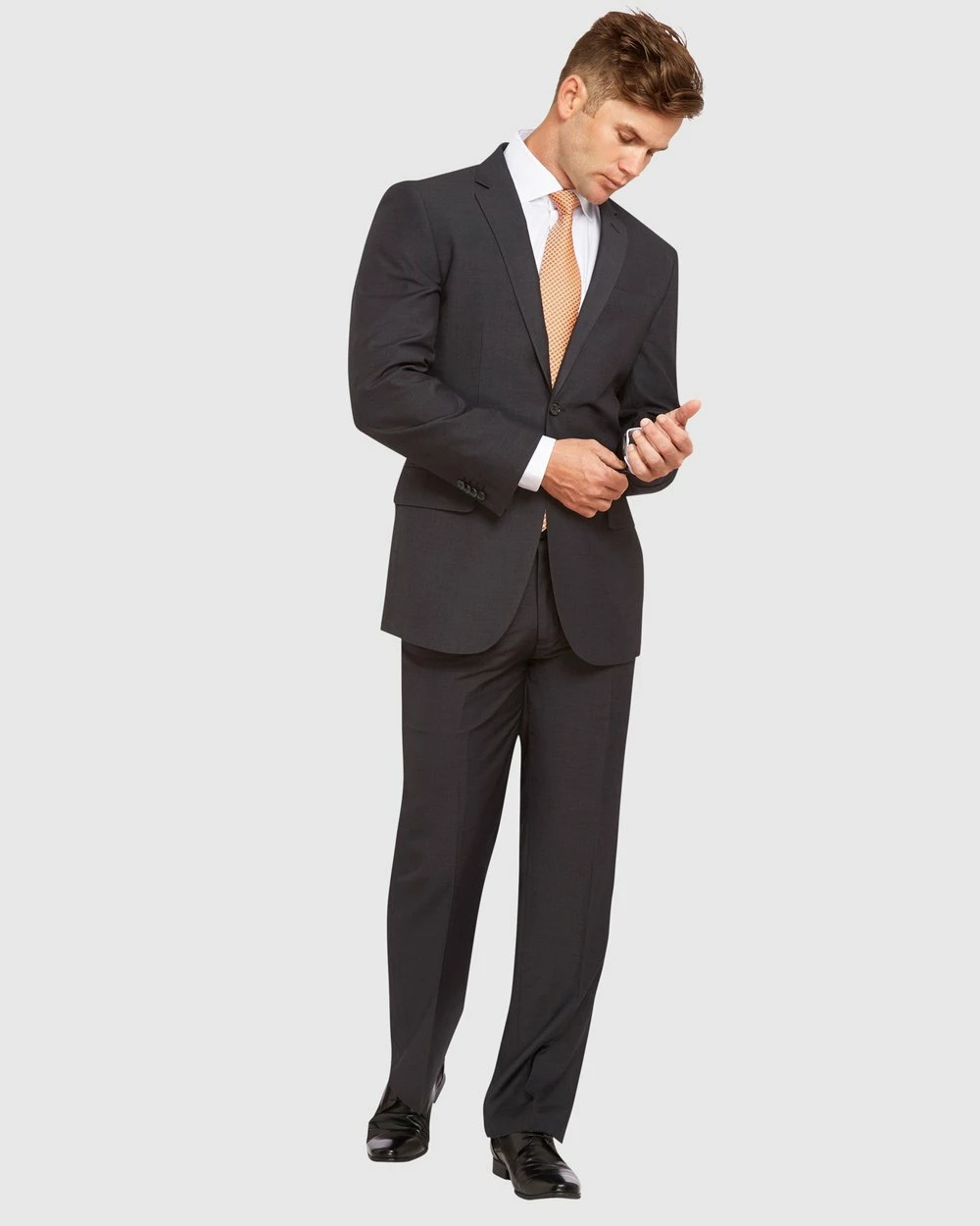The Kelly Country Livorno Slim fit Suit. This clean charcoal light weight suit made by one of Australia’s most trusted brands in men’s apparel . A good choice for the office or other formal & business events. Fresh and light, a smart and polished look for the executive gentlemen. Perfect for Spring, Summer and Autumn seasons. Clearly a smart, elegant addition to any wardrobe.