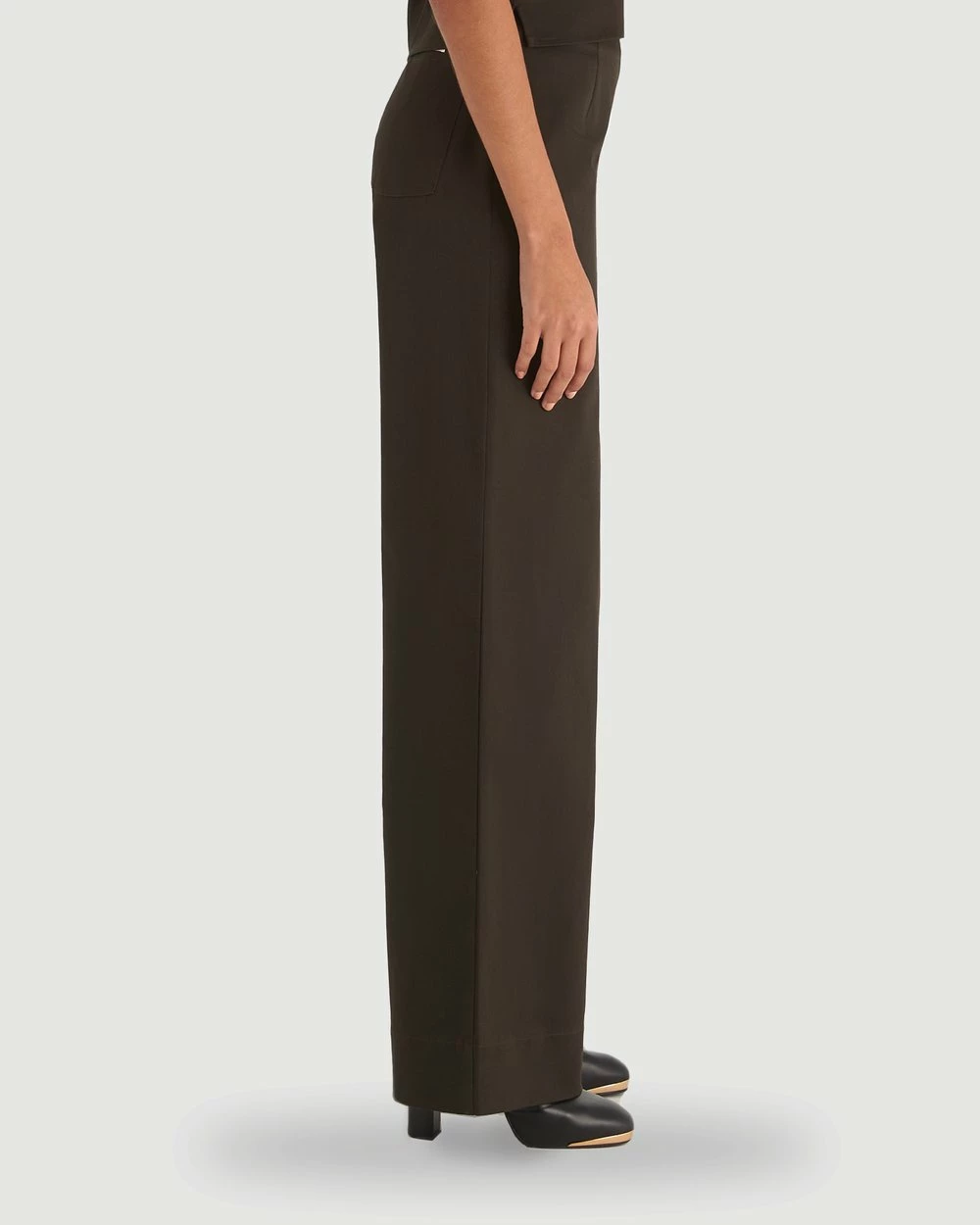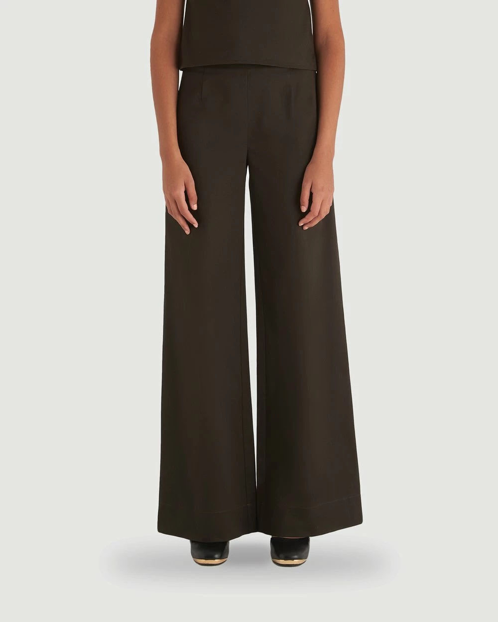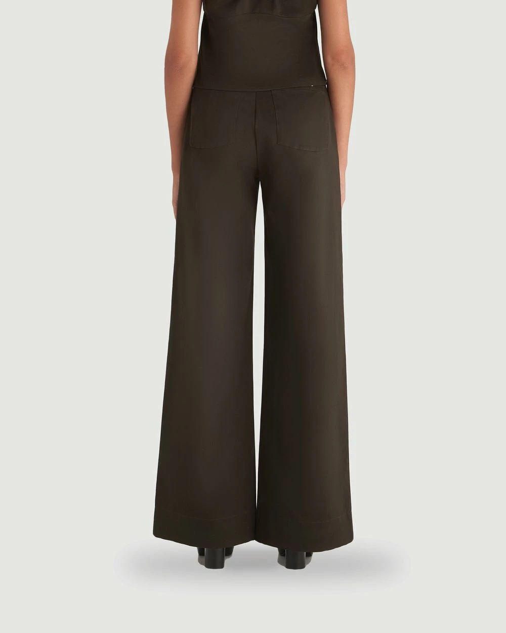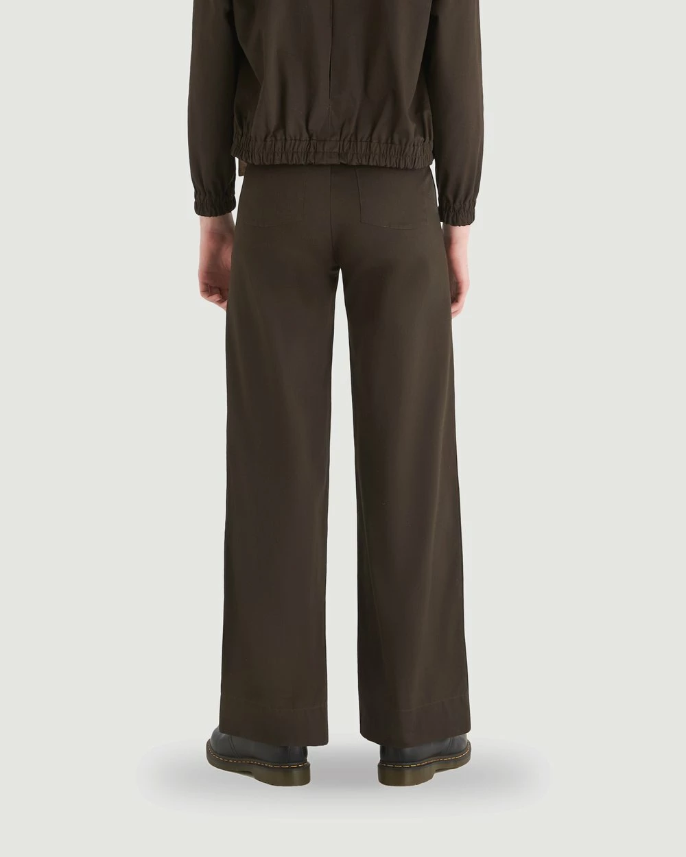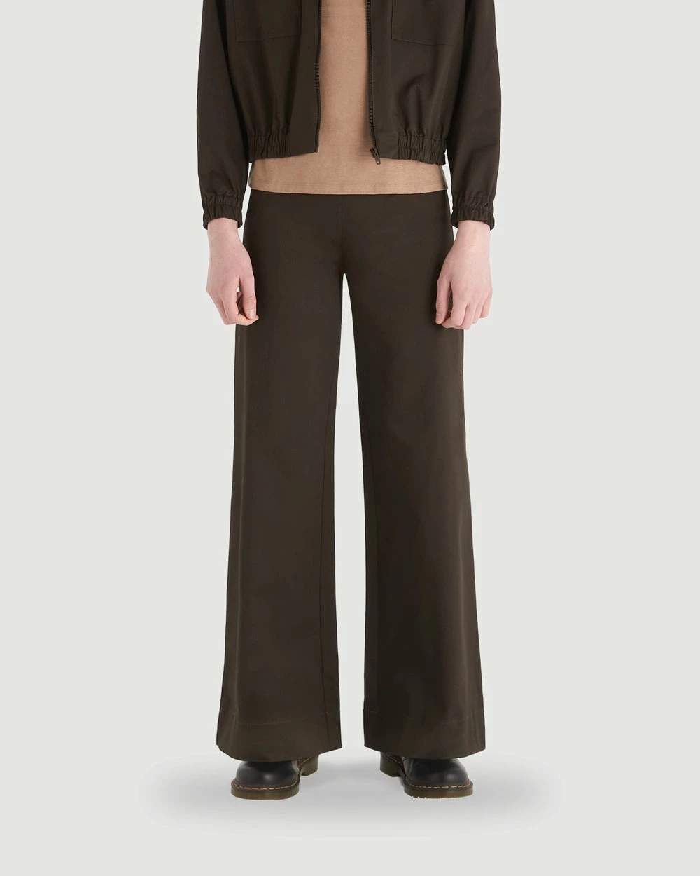 madre natura offers timeless lux laidback Australian style that is modern but feels nostalgic. The Boronia Flares are influenced by the seventies, cut from dead-stock dark olive cotton blend.