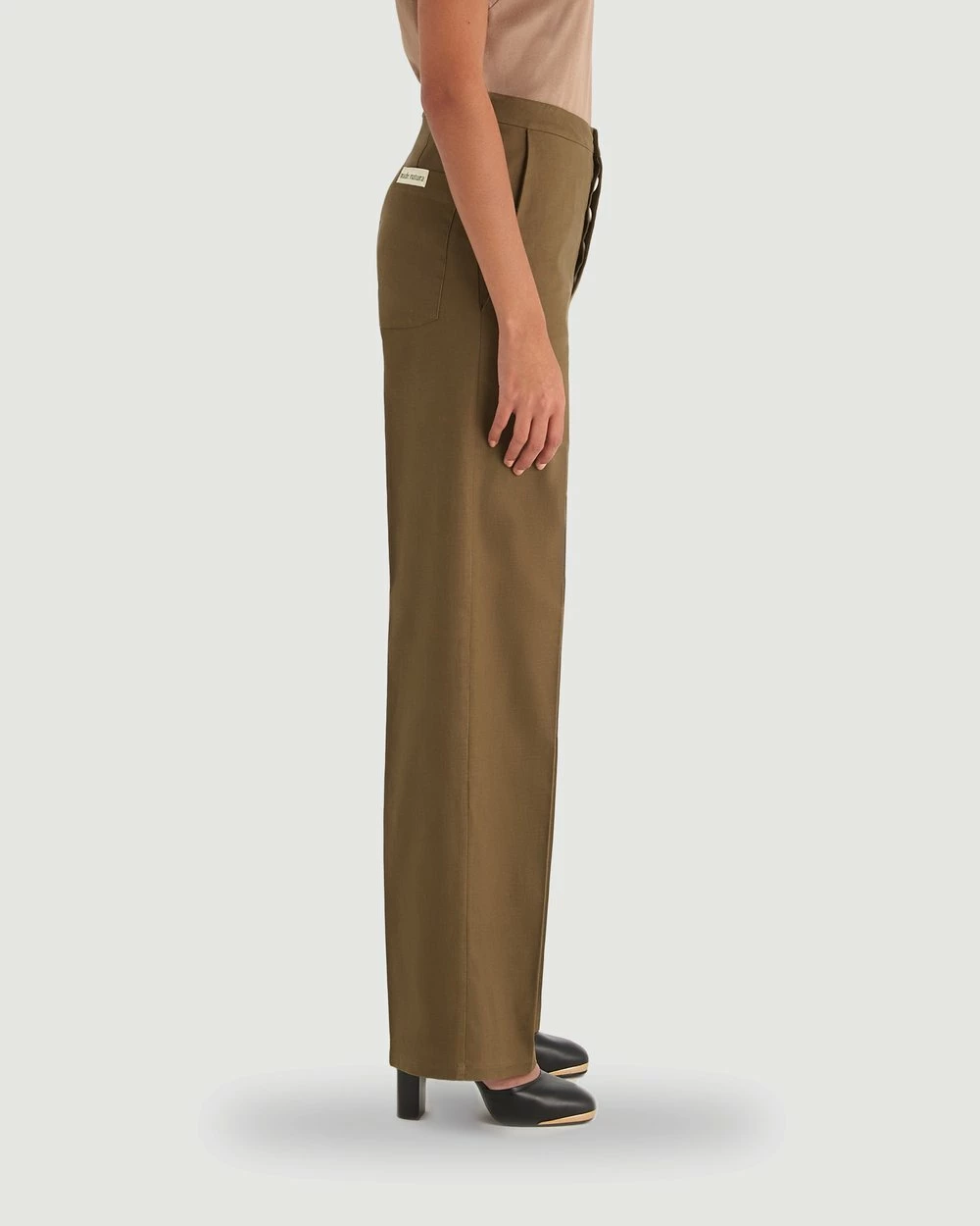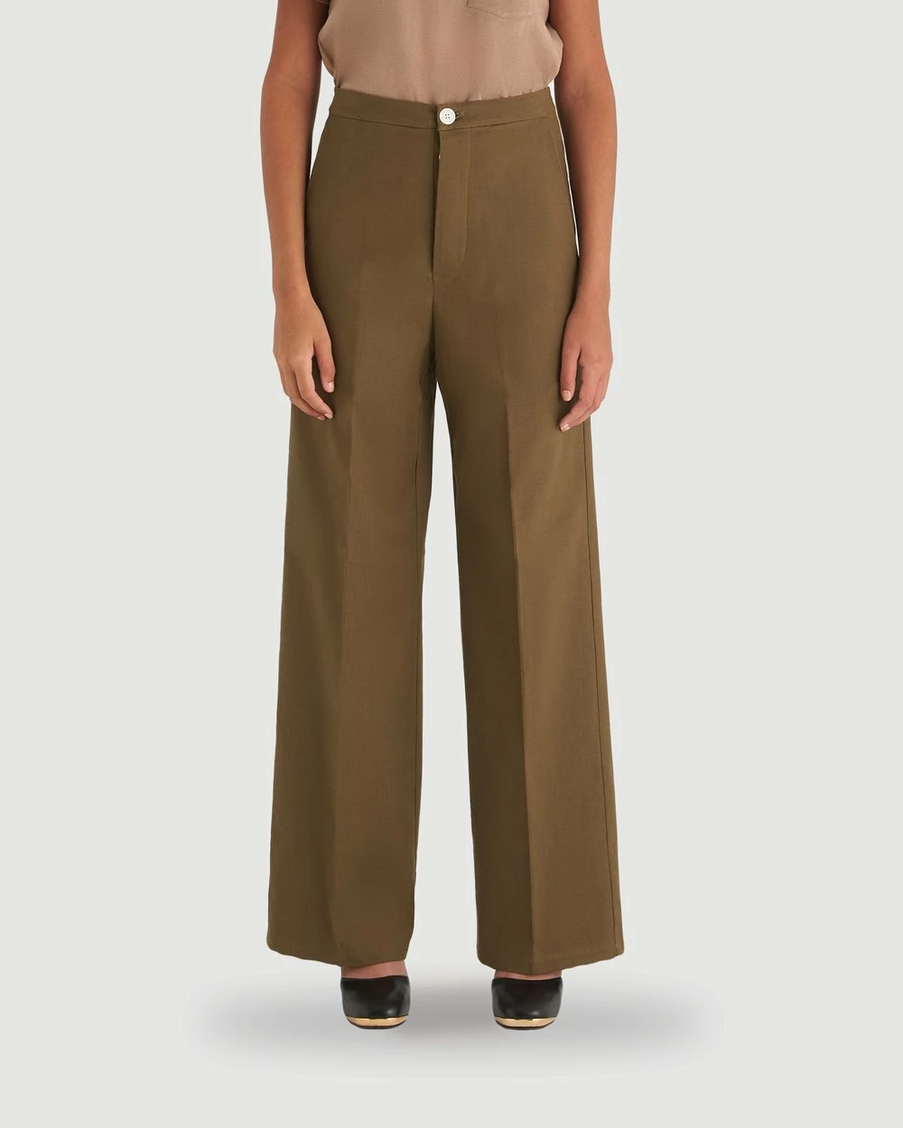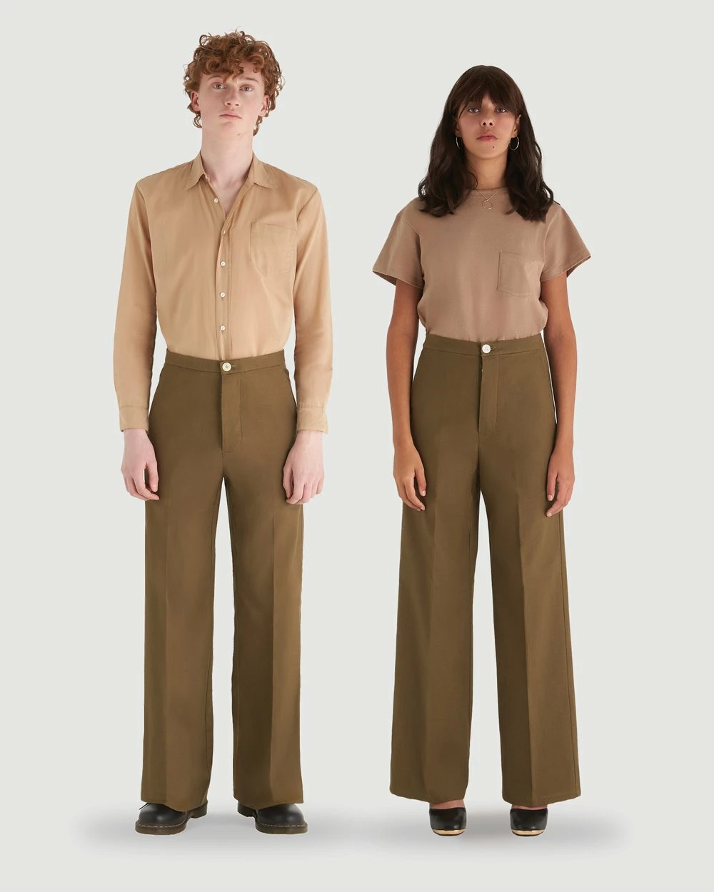 madre natura offers timeless lux laidback Australian style that is modern but feels nostalgic. The Palm Pants are influenced by the seventies and cut from from dead-stock limited edition cotton elastane blend.
