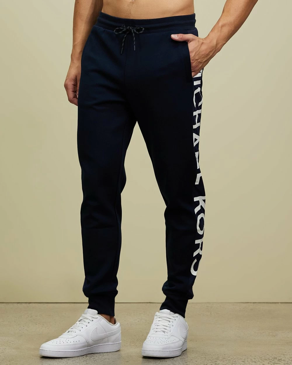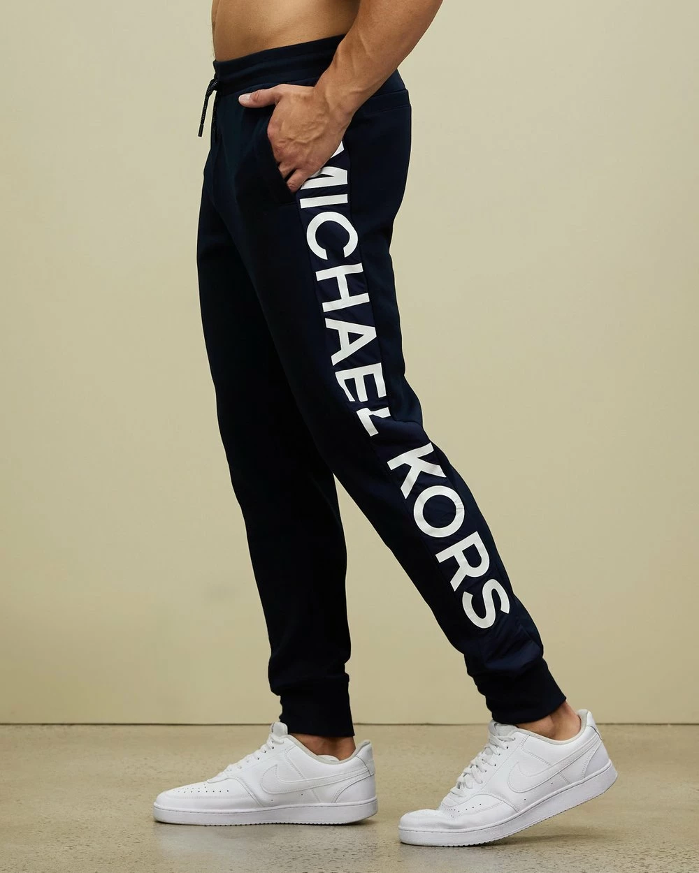 Designer Michael Kors is an icon of American fashion, and his eponymous brand is renowned around the world for its premium accessories and clean, sports-inspired aesthetic. Bring a luxurious edge to your sweats and streetwear rotation with the boldly branded Shibuya Logo Joggers, delivered in a classic navy hue with contrast white logo print.