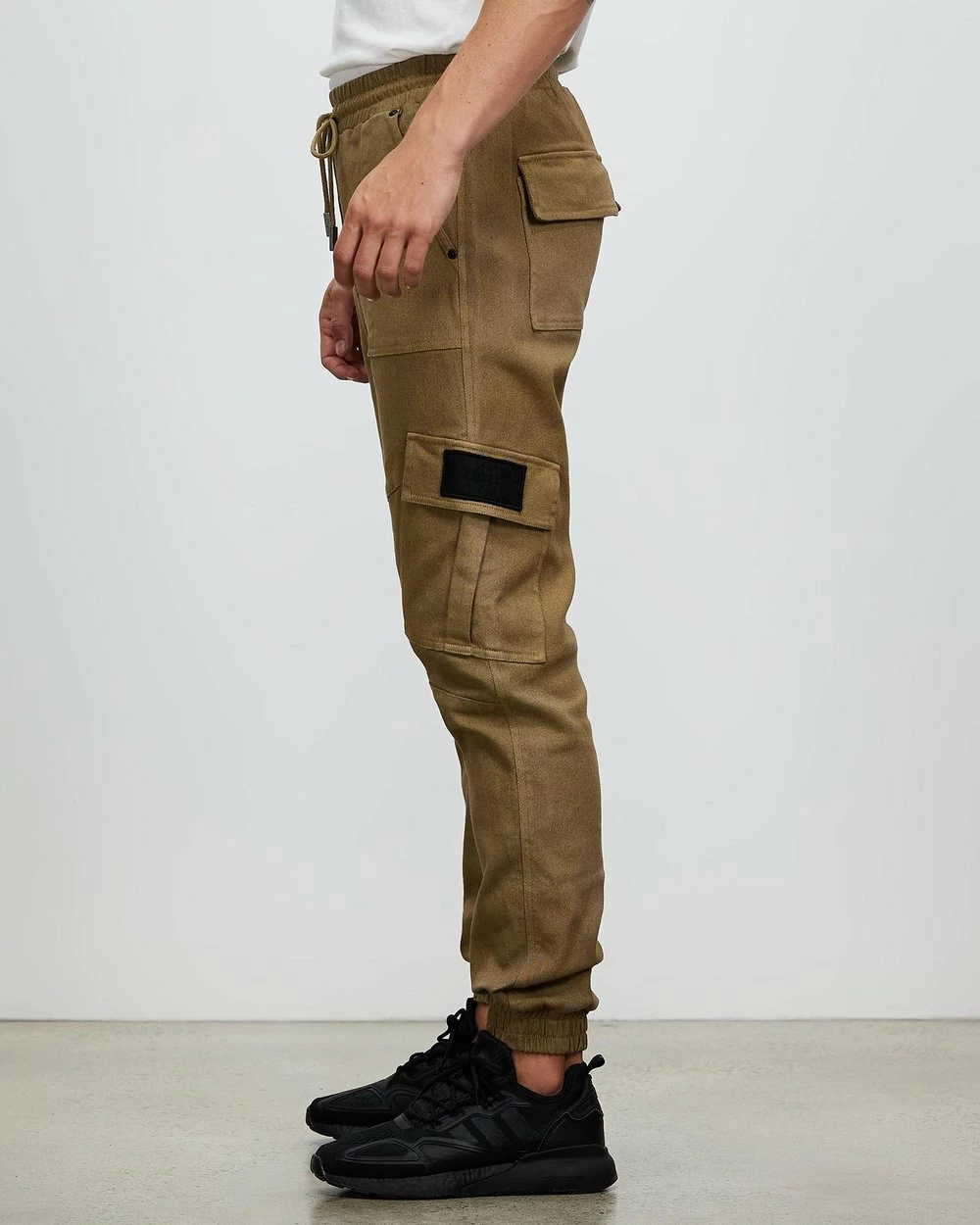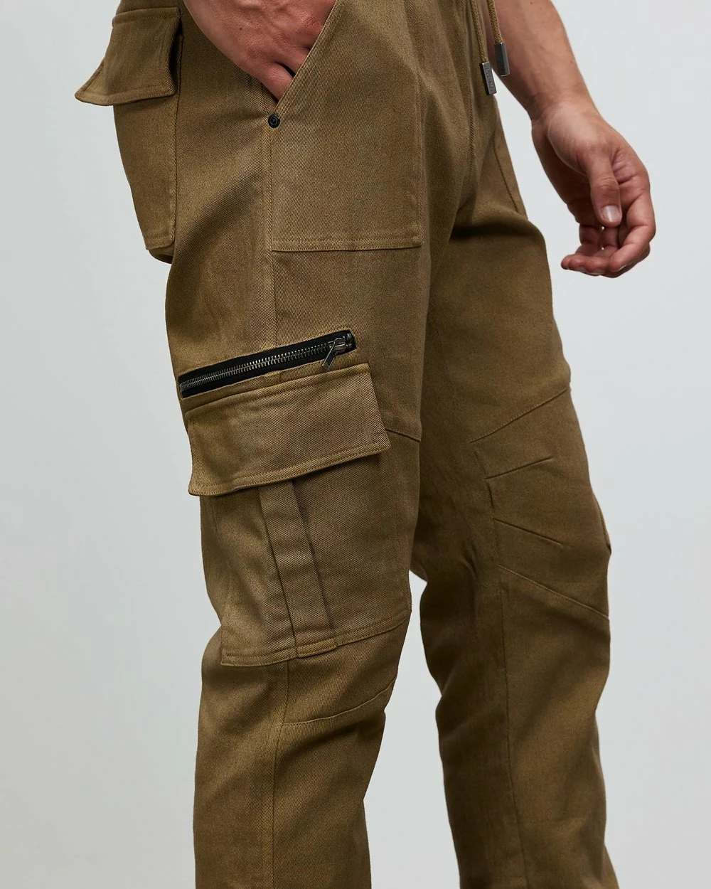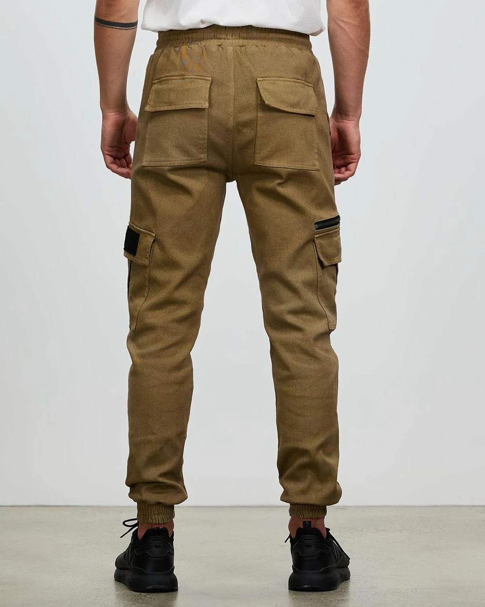 – Patch pockets to legs with snap closure; zipper pocket to right leg