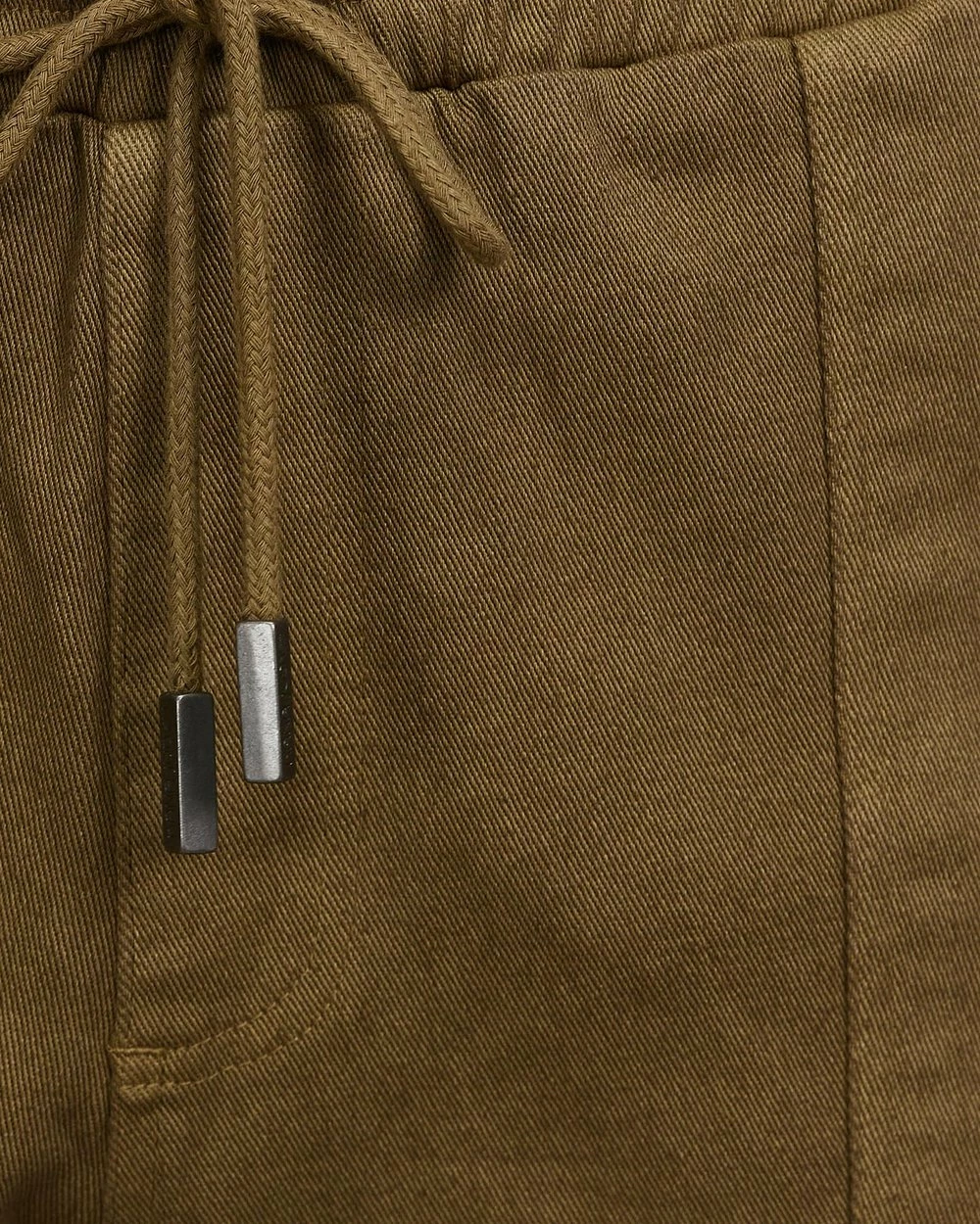 – Elasticised waist with drawstring to secure fit; metal hardware toggles