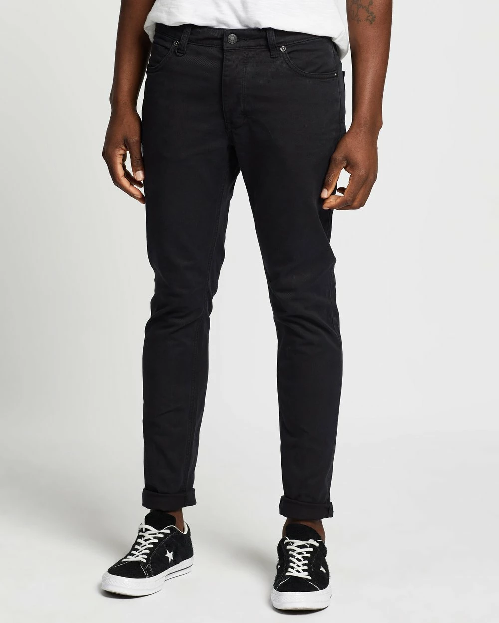 Our model is wearing size W32/L32 jeans. He is 189.2cm (6’2.5”) tall with a 96.5cm (38”) chest and a 82.6cm (32.5”) waist.