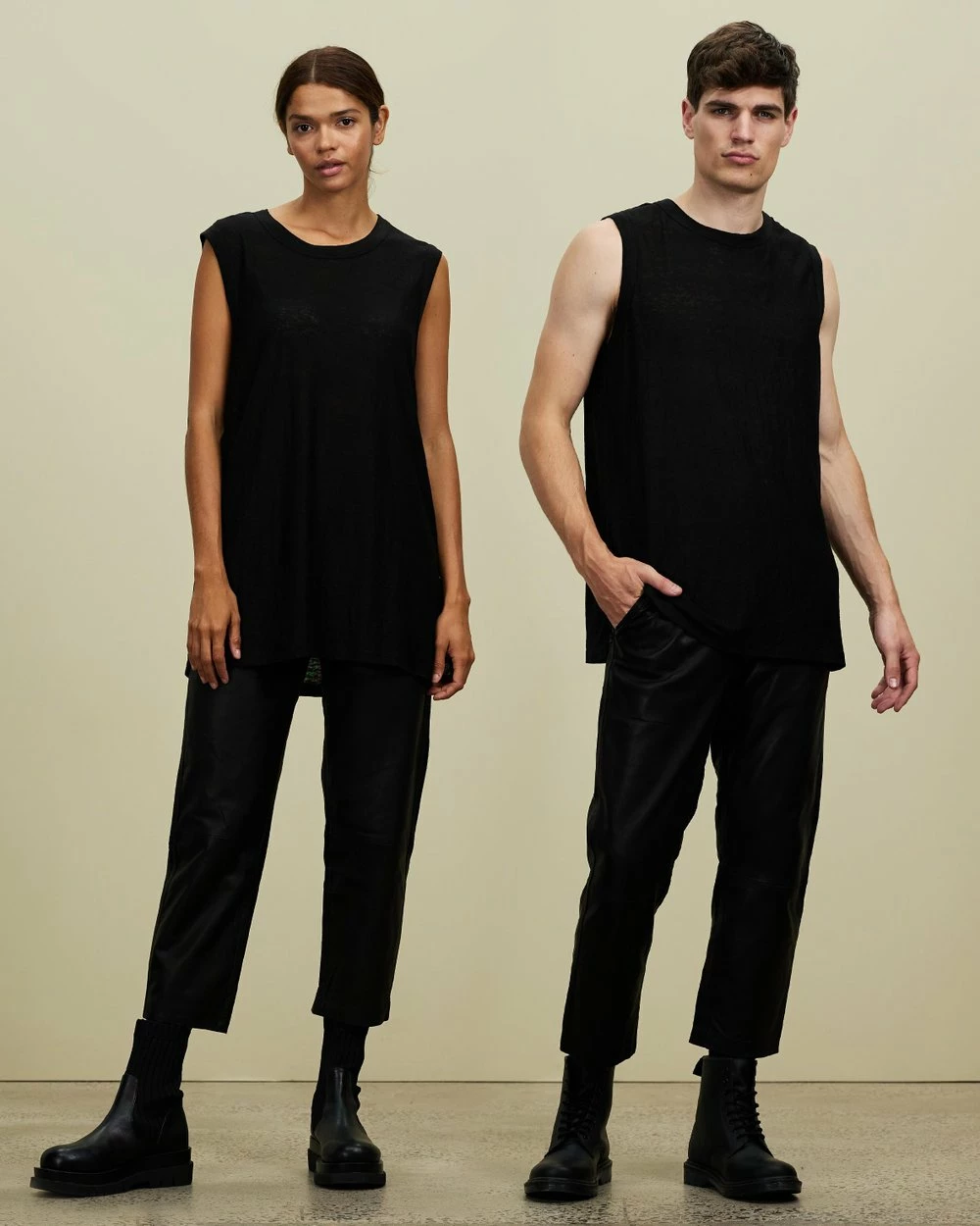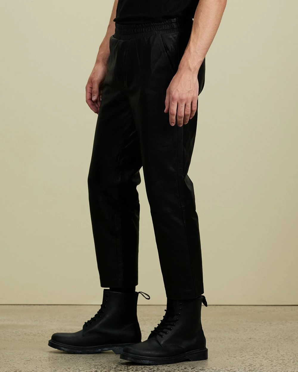 Sydney label Non+ offers elevated lifestyle staples with contemporary personality and edge. The Track Pants – Unisex are made from high-quality leather and are cropped above the ankle, perfect for wearing with boots.