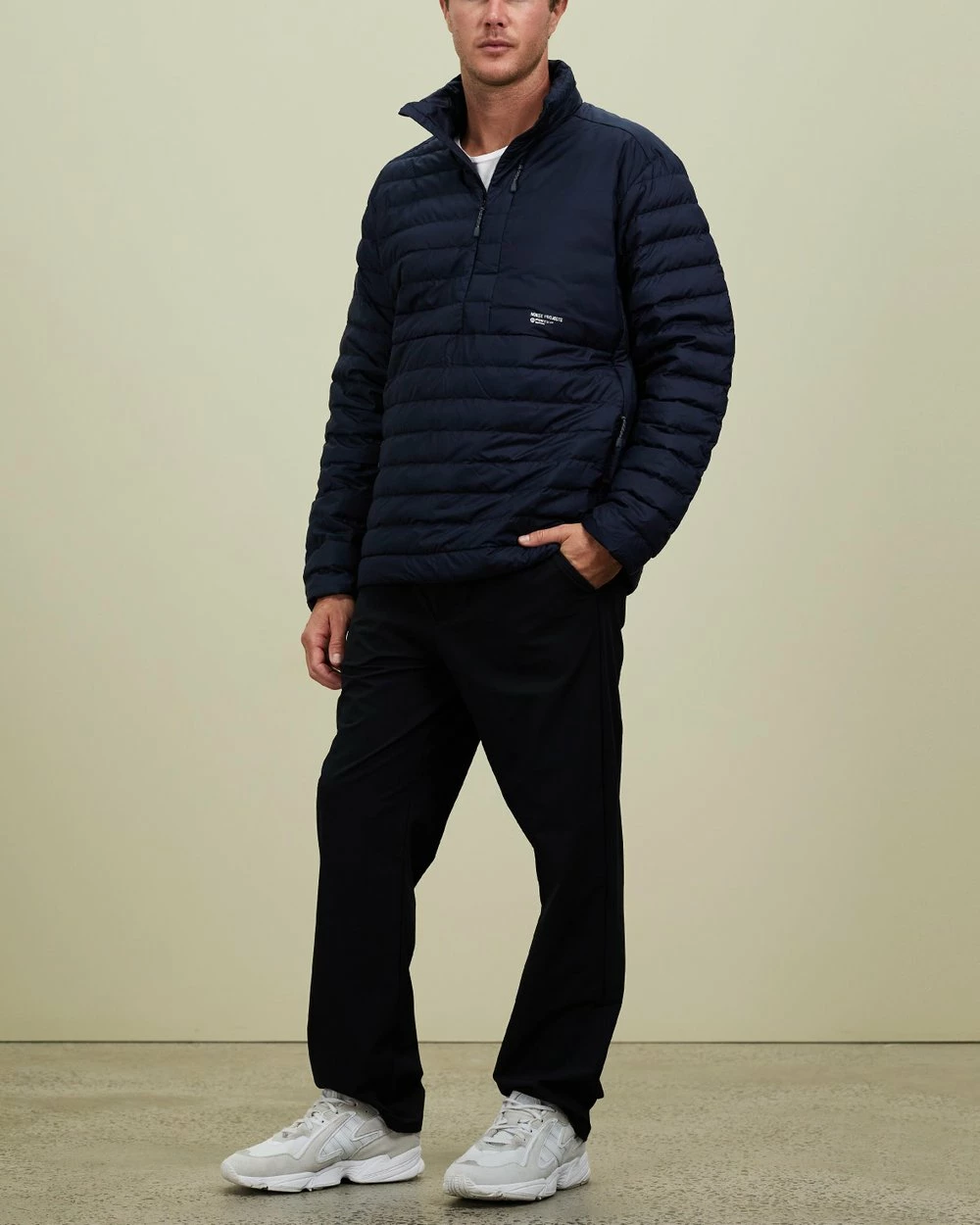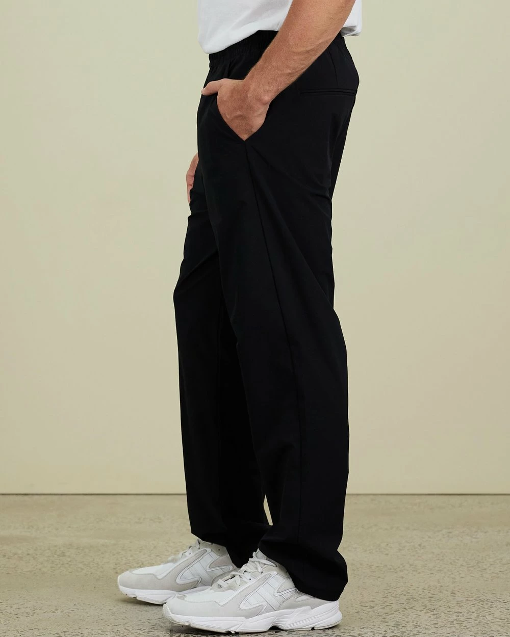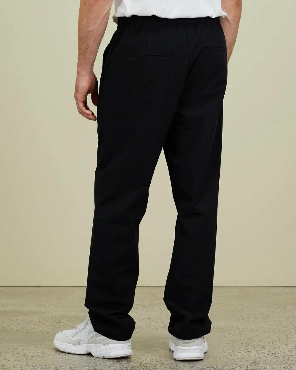 The Aaren Travel Solotext by Norse Projects draw inspiration from industrial workwear and transform the style into a streetwear option. Crafted in a suiting style fabric, these pants feature the addition comfort of an elastic waistband and relaxed straight leg design.