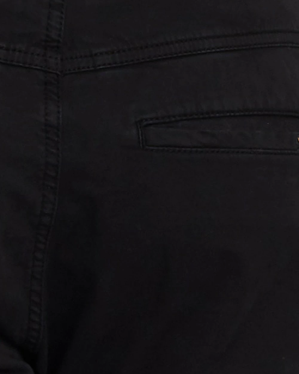 – Mid-weight organic cotton-rich twill with added stretch; unlined; opaque