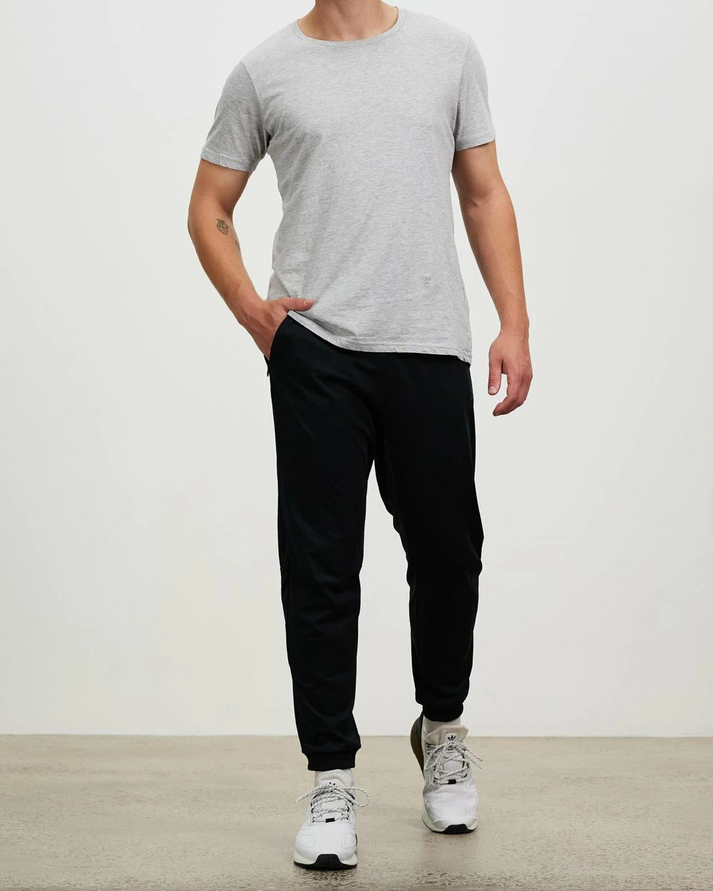 – Elastic cuffs with tapered leg
