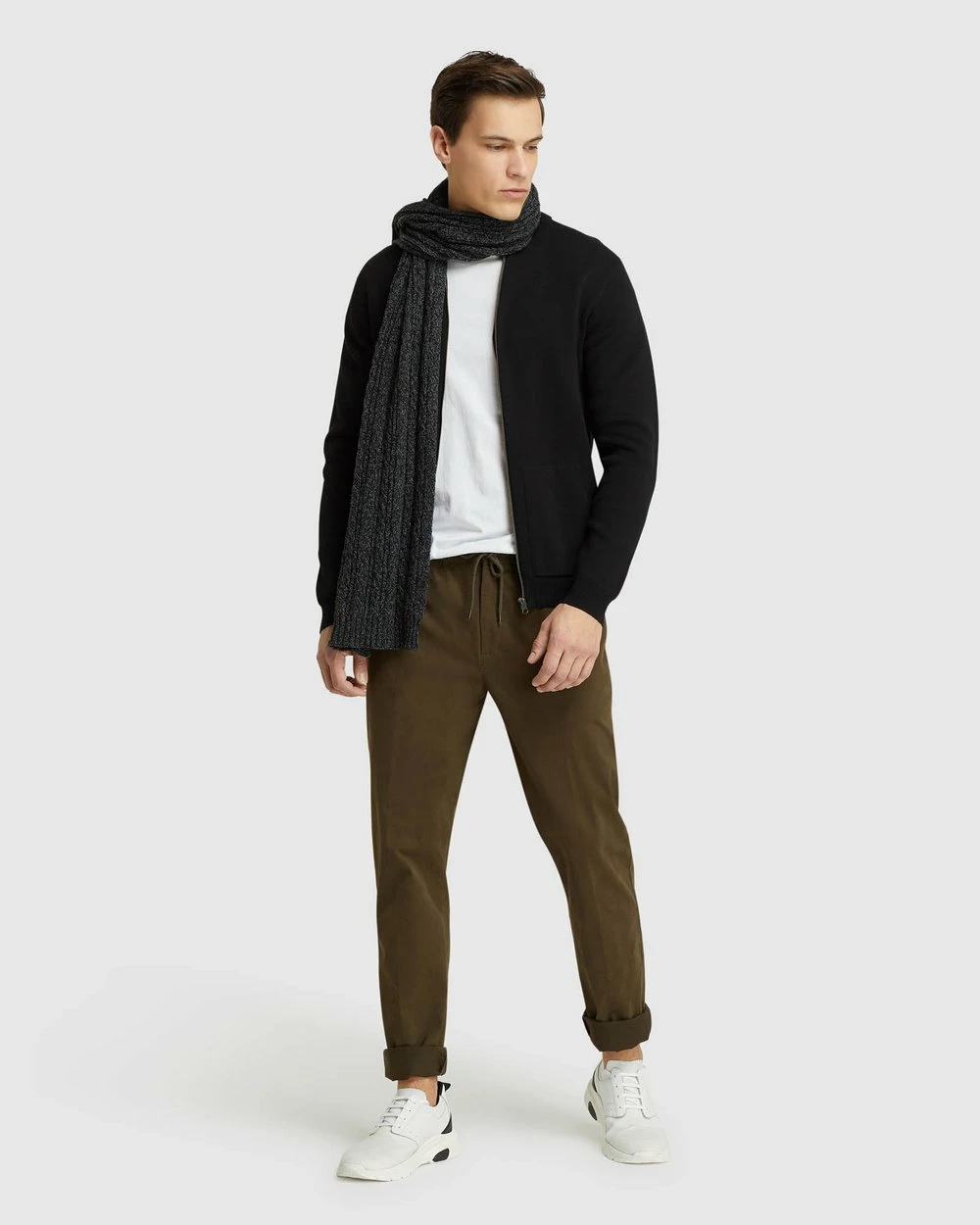 Inside leg: 83.5cm, Front rise: 27.5cm, Opening leg: 16.5cm (size 82). Our model is wearing size AU 82 pants and usually takes size 82. He is 185cm (6’1.75″) tall with a 96.52cm (38″) chest and 81cm (32″) waist.