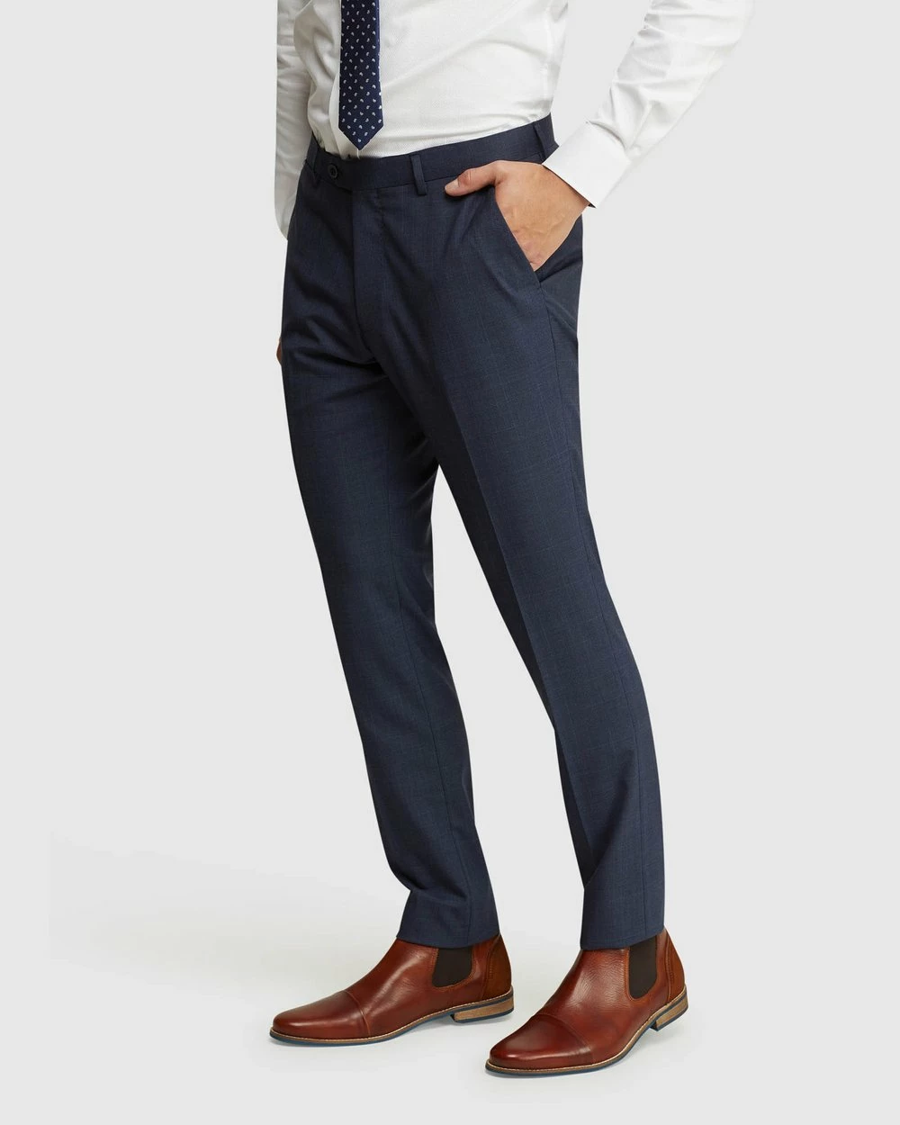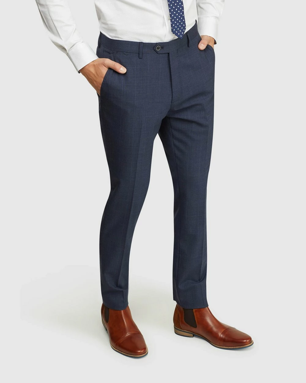 Complete the perfect suiting style with the Auden Wool Stretch Check Suit Trousers by Oxford. These tailored trousers are crafted from a wool-rich stretch blend and cut in a slim fit with a narrow leg. They feature a check pattern, side and back pockets, zip fastening and front pleated leg.