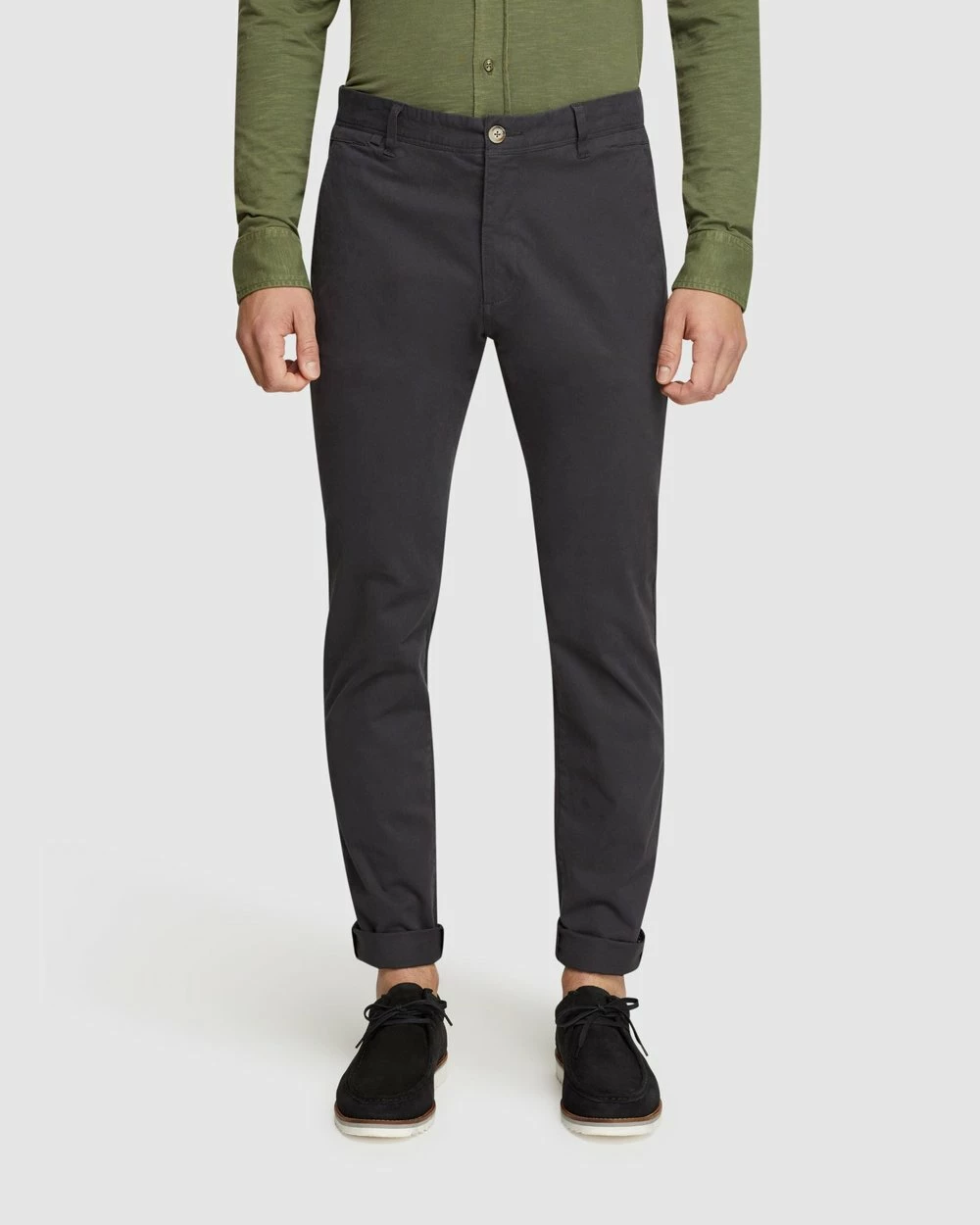 Front rise: 26.75cm, 1/2 leg opening: 17.75cm, Inseam: 83cm (size 84). Our model is wearing a size 84 chinos, and usually takes a size 84. He is 185cm (6’1.75″) tall with a 96.52cm (38″) chest and 81cm (32″) waist.