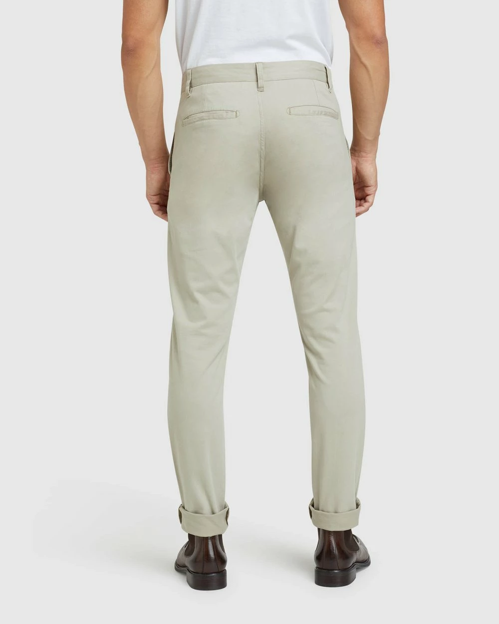 Front rise: 26.25cm, 1/2 leg opening: 17.25cm, Inseam: 85cm (size 84). Our model is wearing a size AU 84 chino. He is 185cm (6’1.75″) tall with a 96.52cm (38″) chest and 81cm (32″) waist.