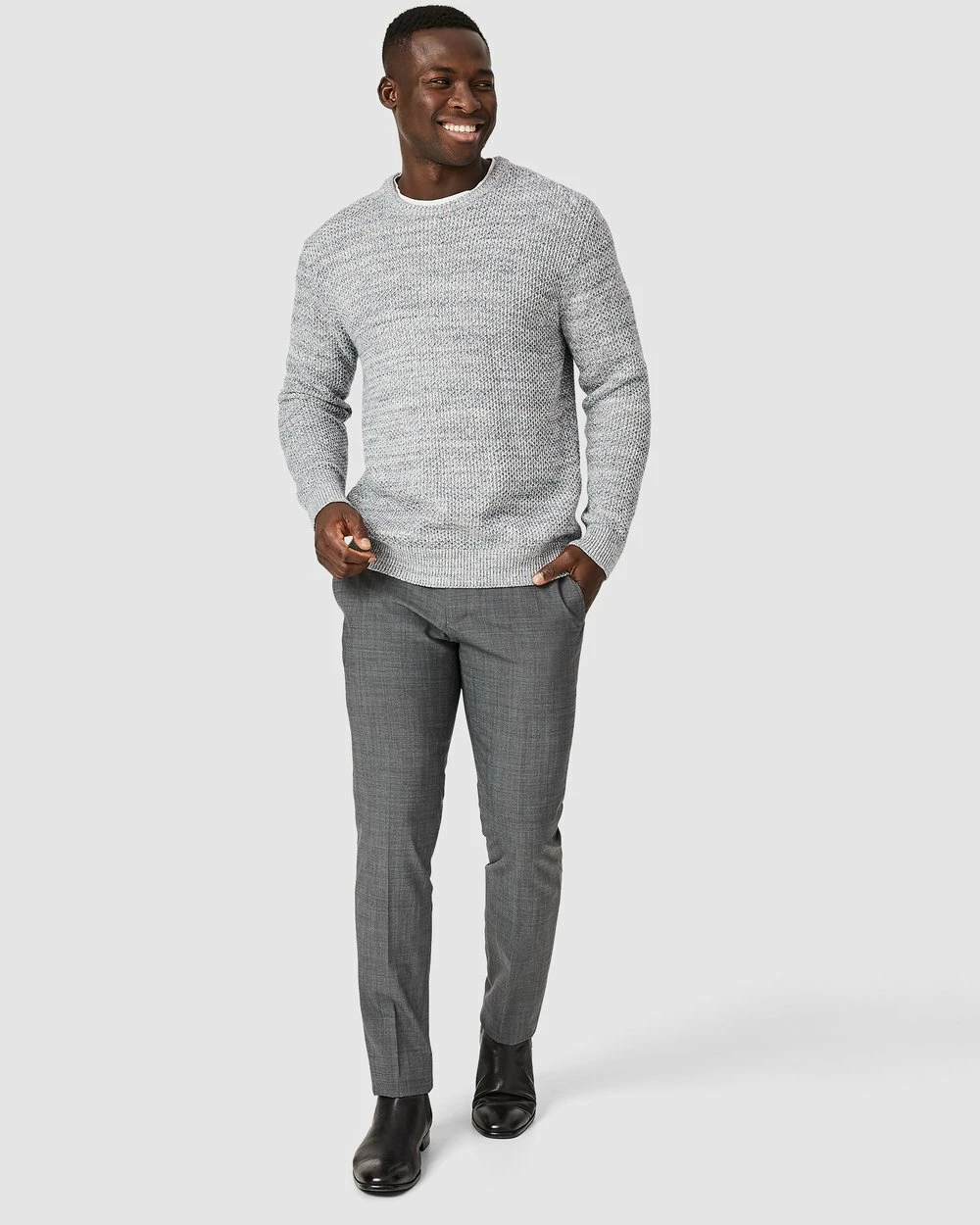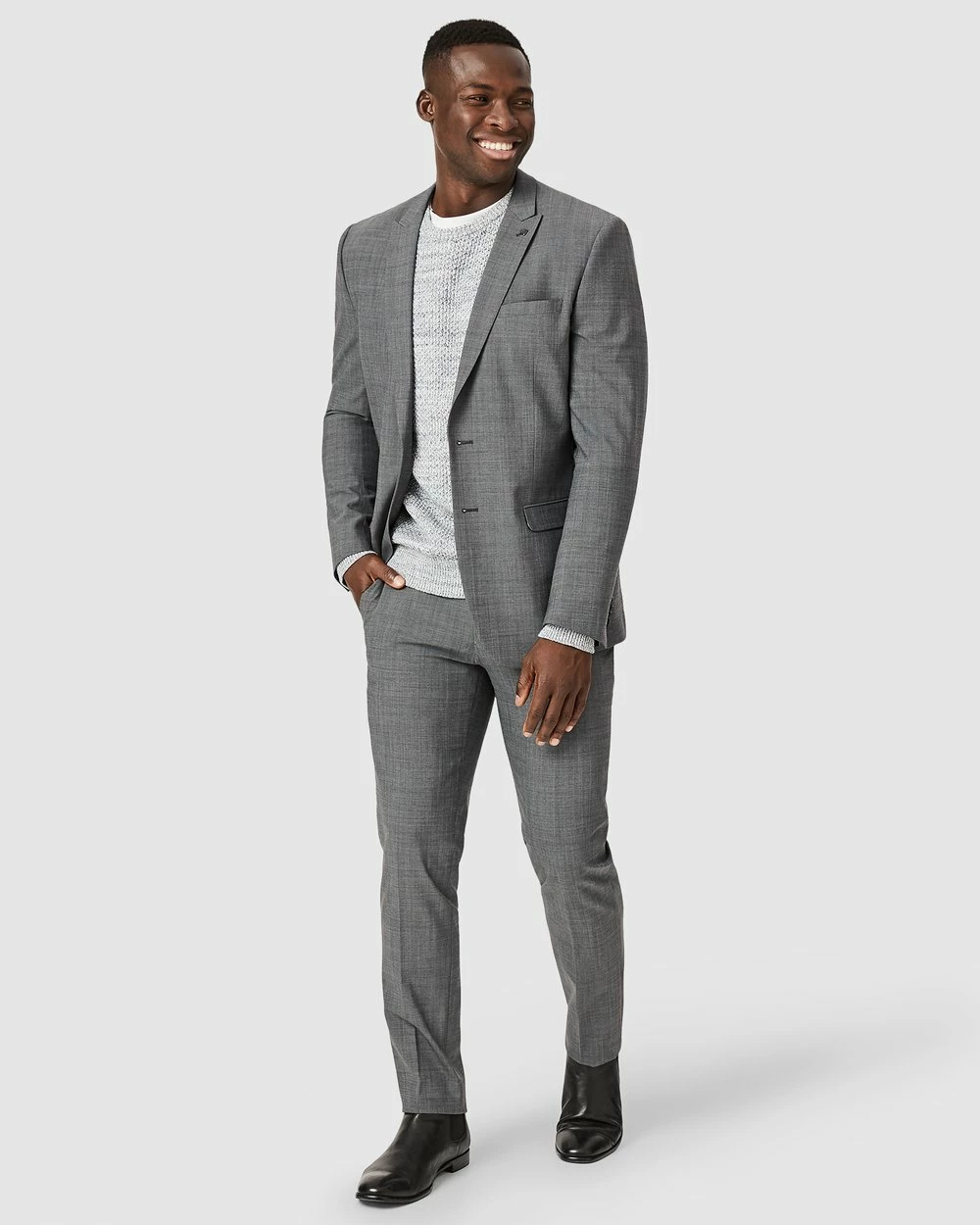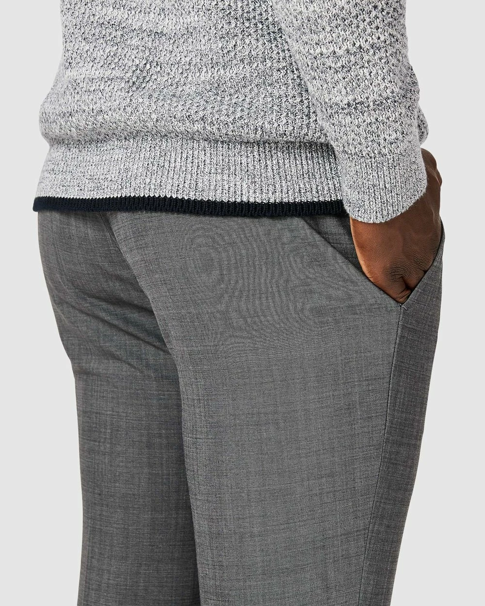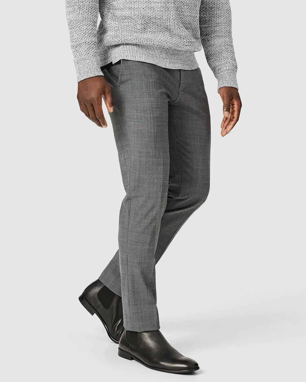 There’s no place like home. The Politix Georges mid-grey pants are crafted in blended Australian wool with bi-stretch for tailored pants that are luxe to wear and wrinkle resistant.