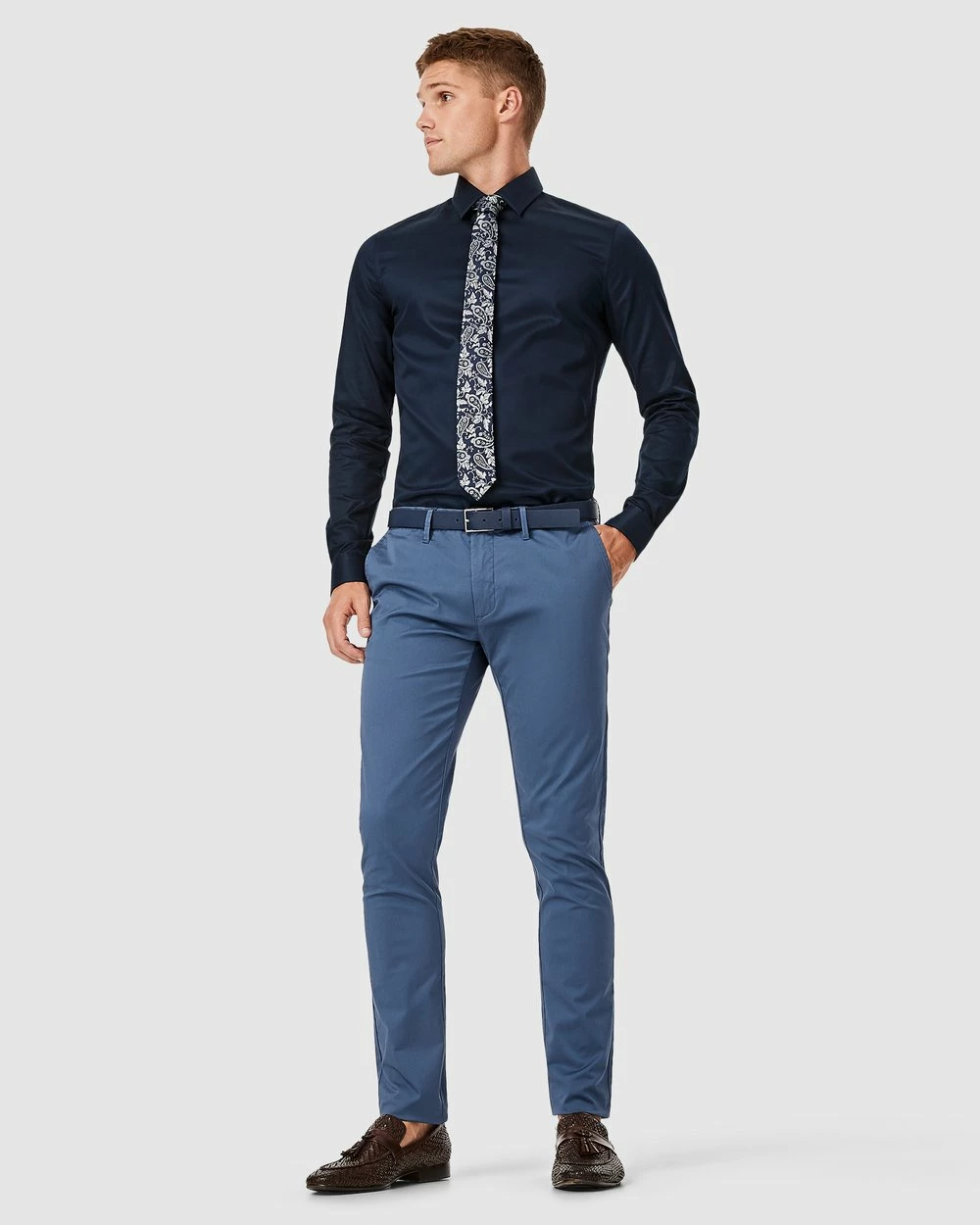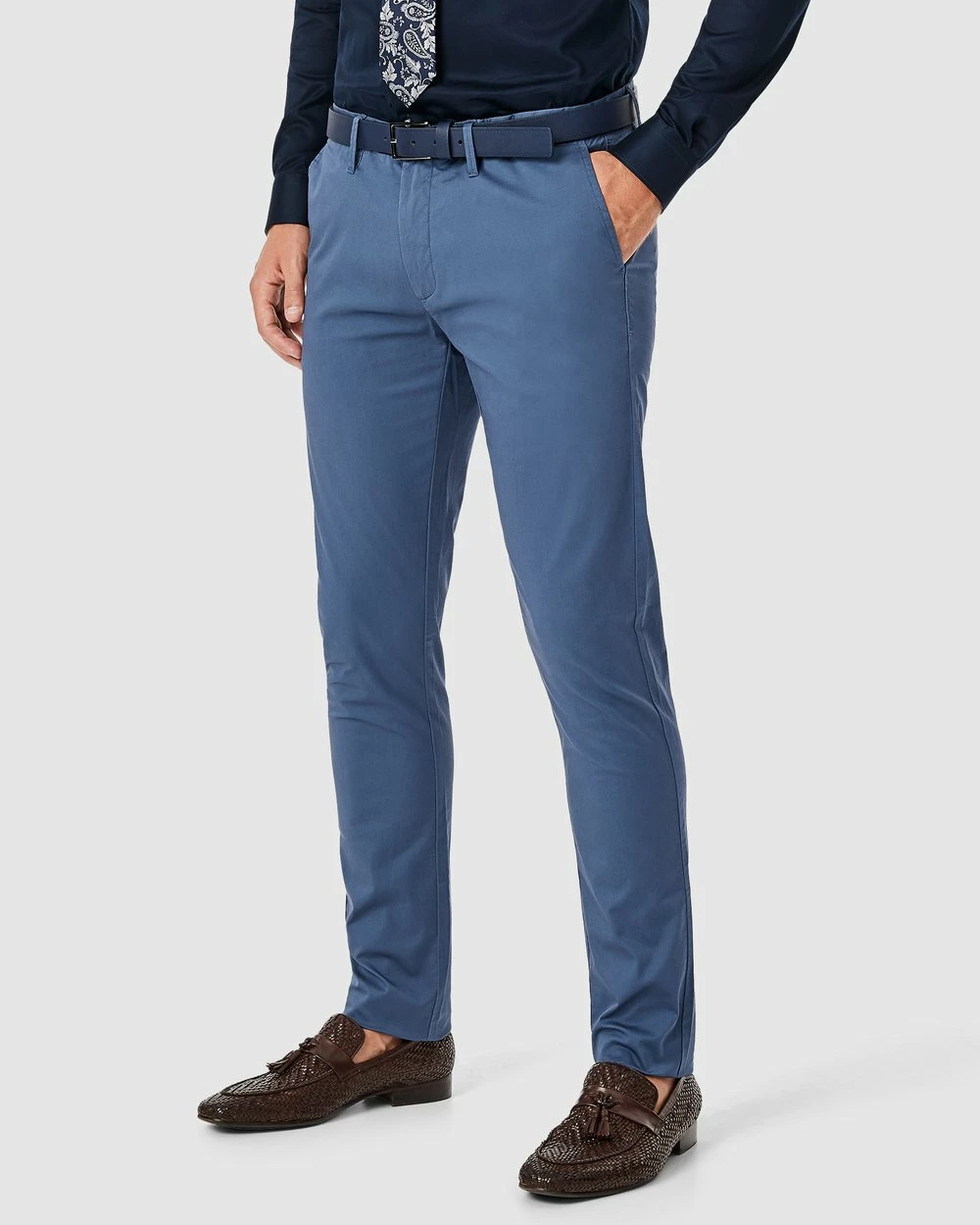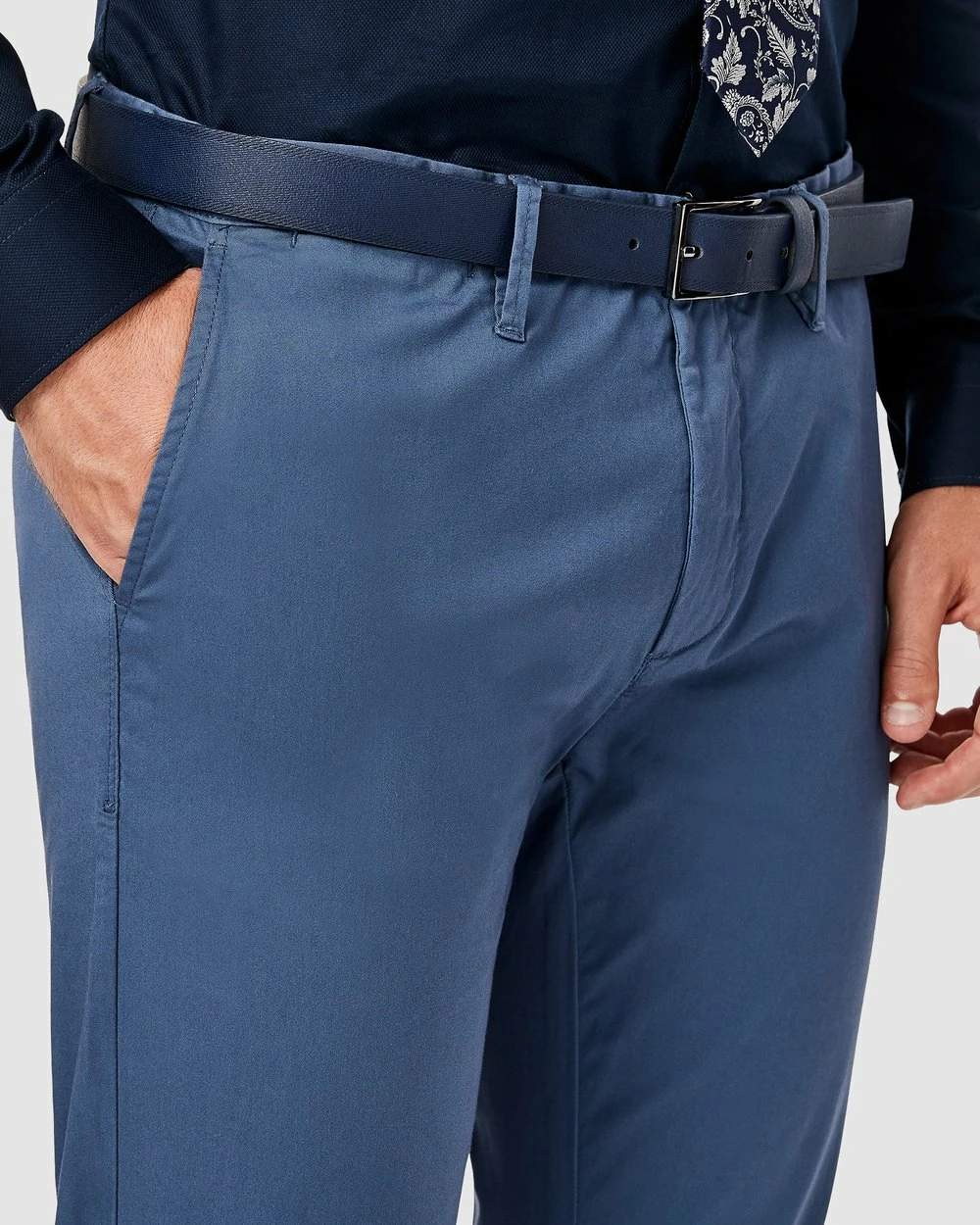 Feeling blue. The Politix Winsor smoky blue chinos delivers a moody shade to your new season wardrobe.