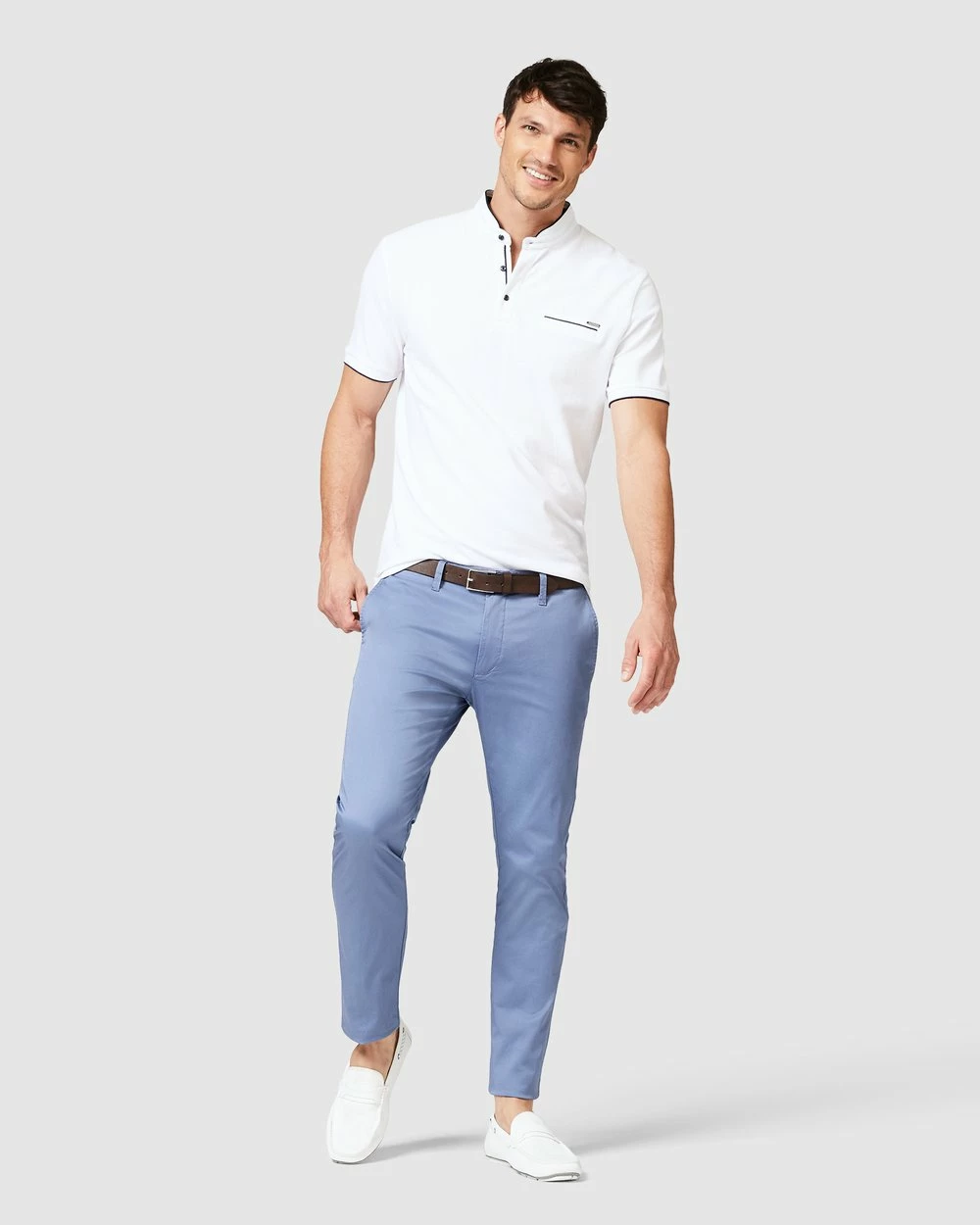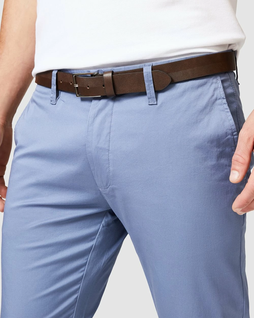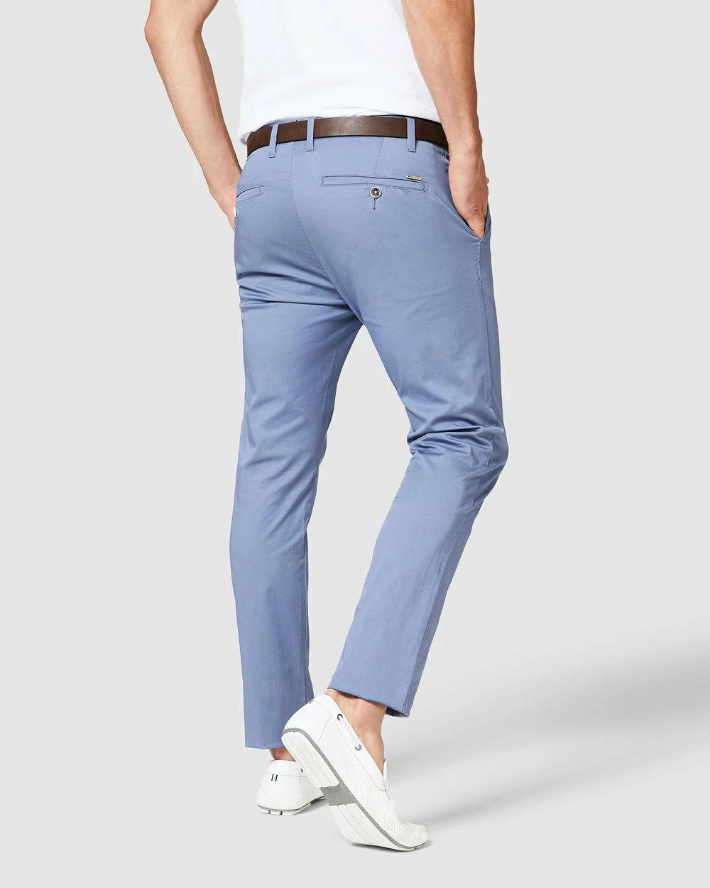 Walk this way. The best-selling Politix Winsor dress chinos are now in new season steel blue shades.