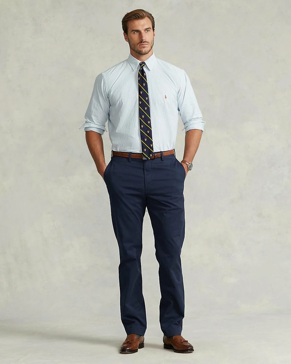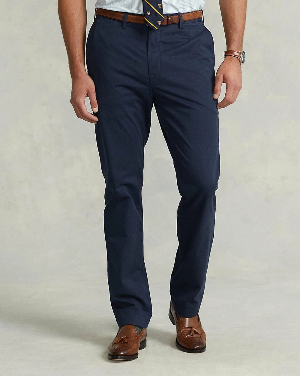 An icon of heritage American design, Polo Ralph Lauren delivers premium staples that promise to form the foundation of any discerning man’s wardrobe. With a tonal Pony logo subtly embroidered at the back-right pocket, the navy blue Bedford Flat Pants are a sleek and timeless addition to your smart-casual workwear roster.