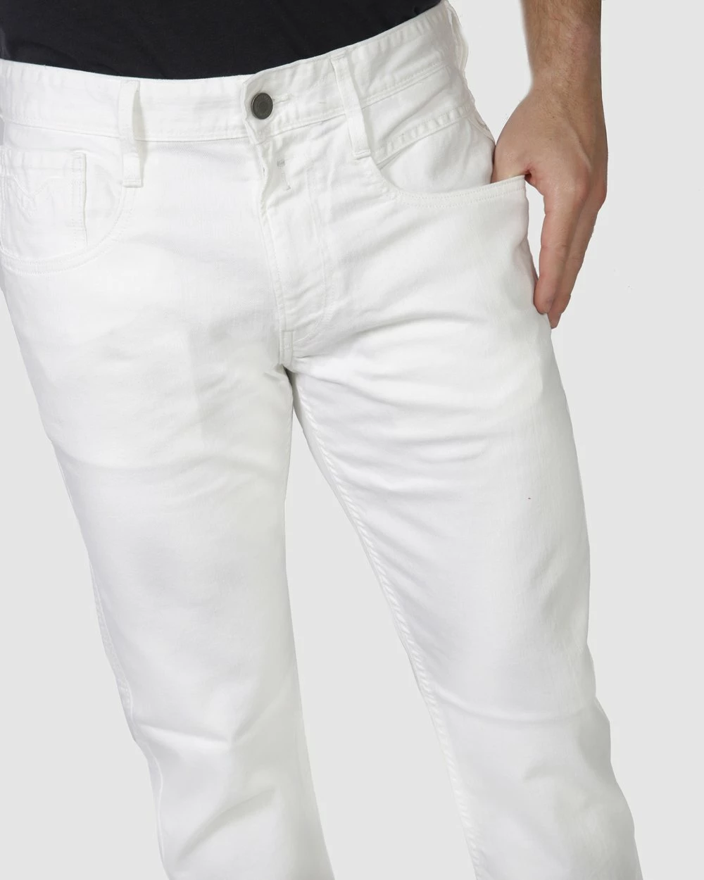 fit, five pockets, fly with one 4-hole button and zipper, two pockets on