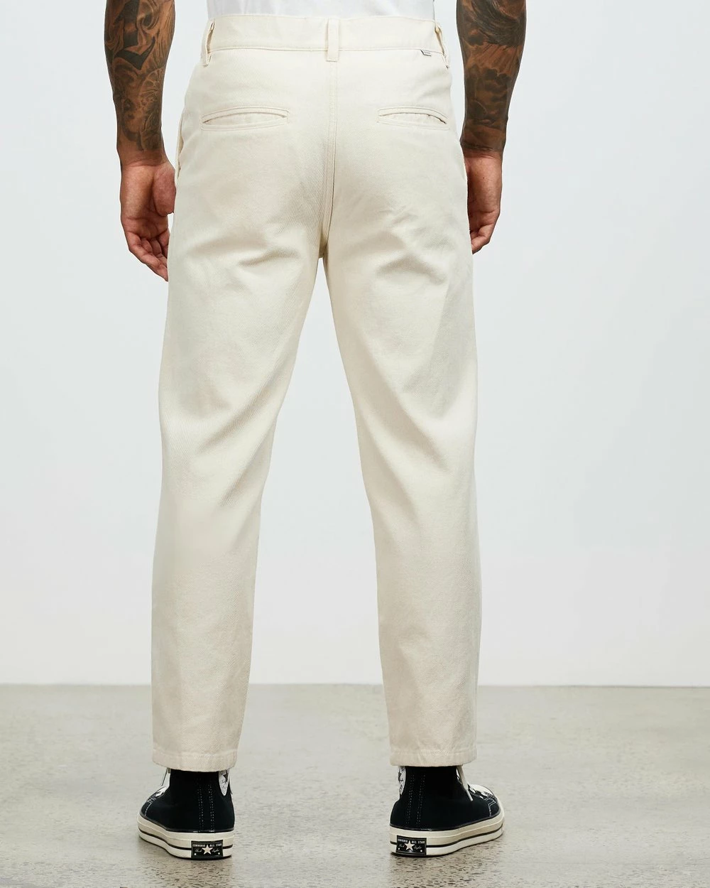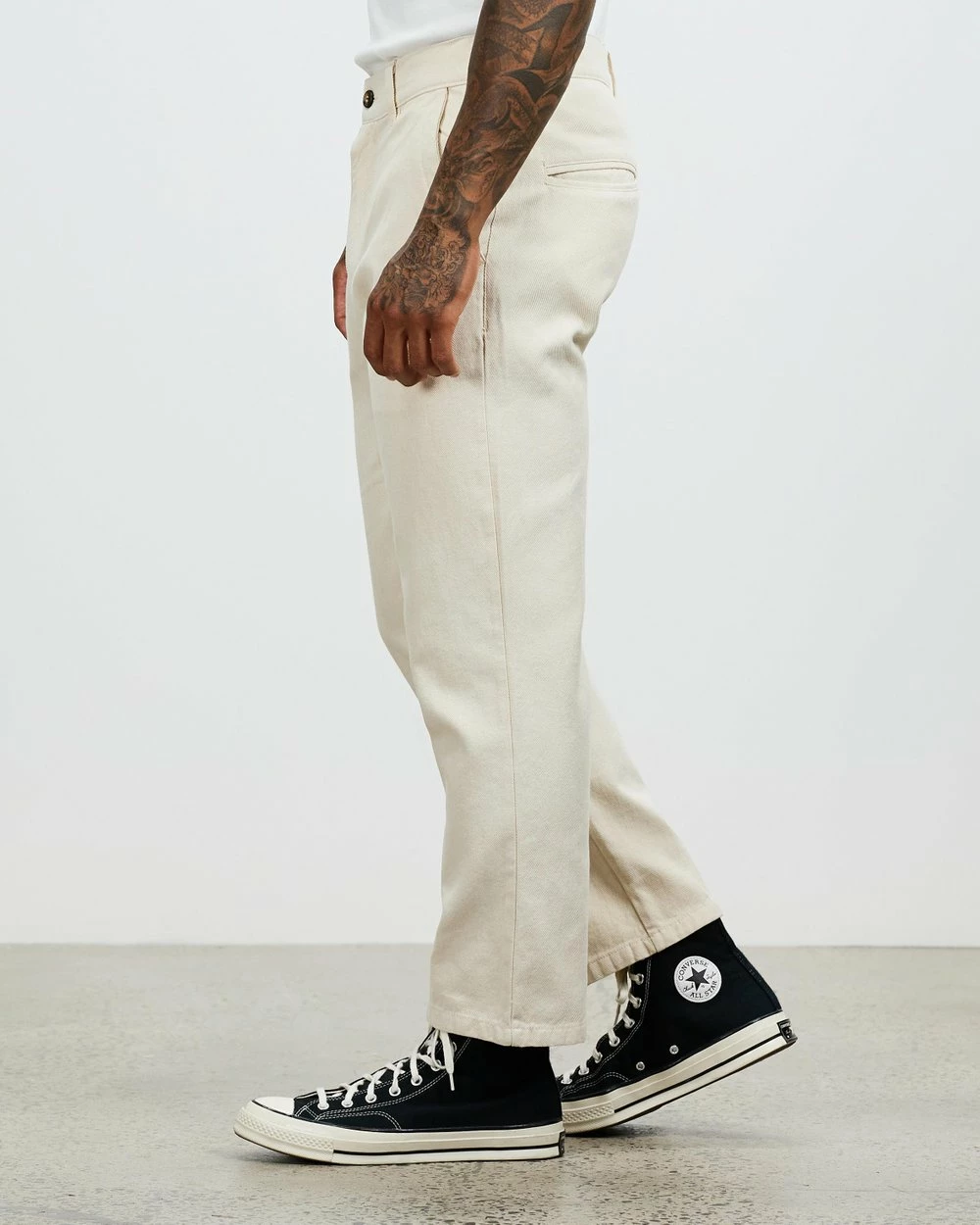 – Cropped length; sits above ankle
