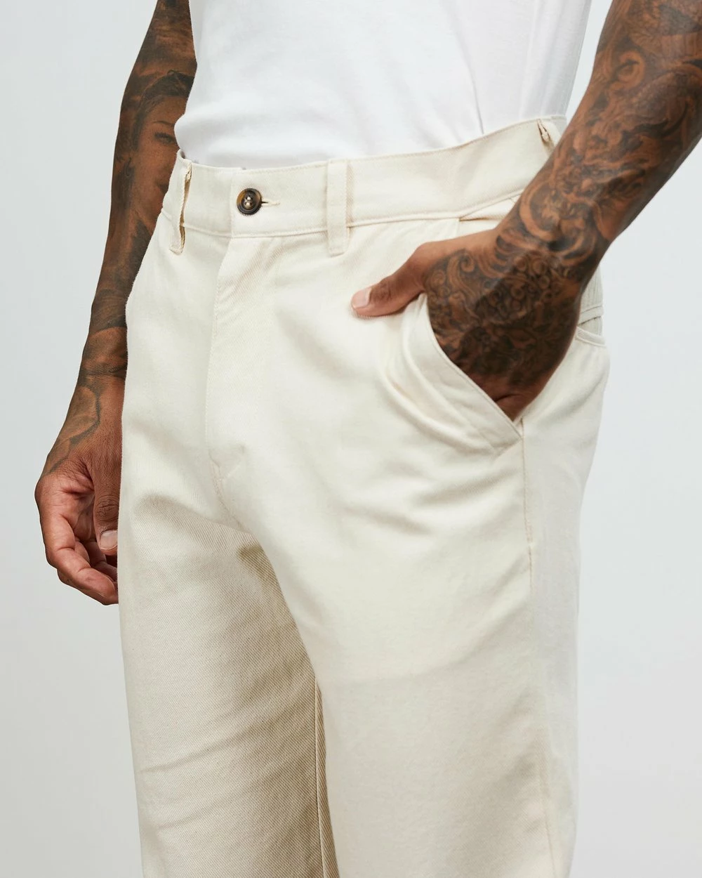 – Belt-looped waistband