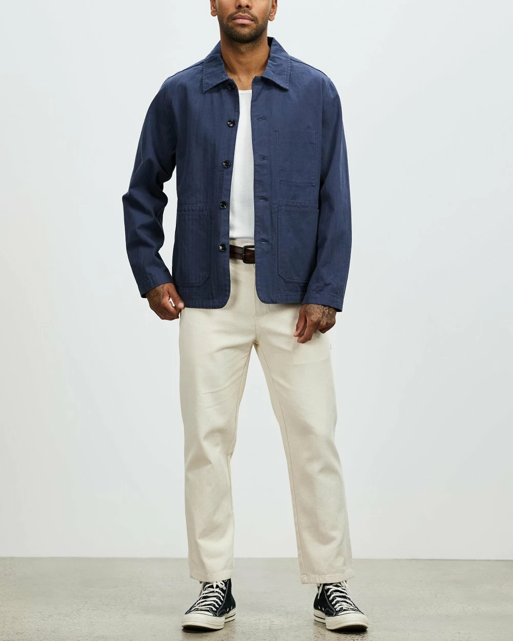 Length: Inside Leg: 67cm; Rise: 29cm; Leg Opening: 21cm (size 32). Our model is 182.9cm (6’0”) tall with a 99.1cm (39”) chest and a 80.0cm (31.5”) waist.