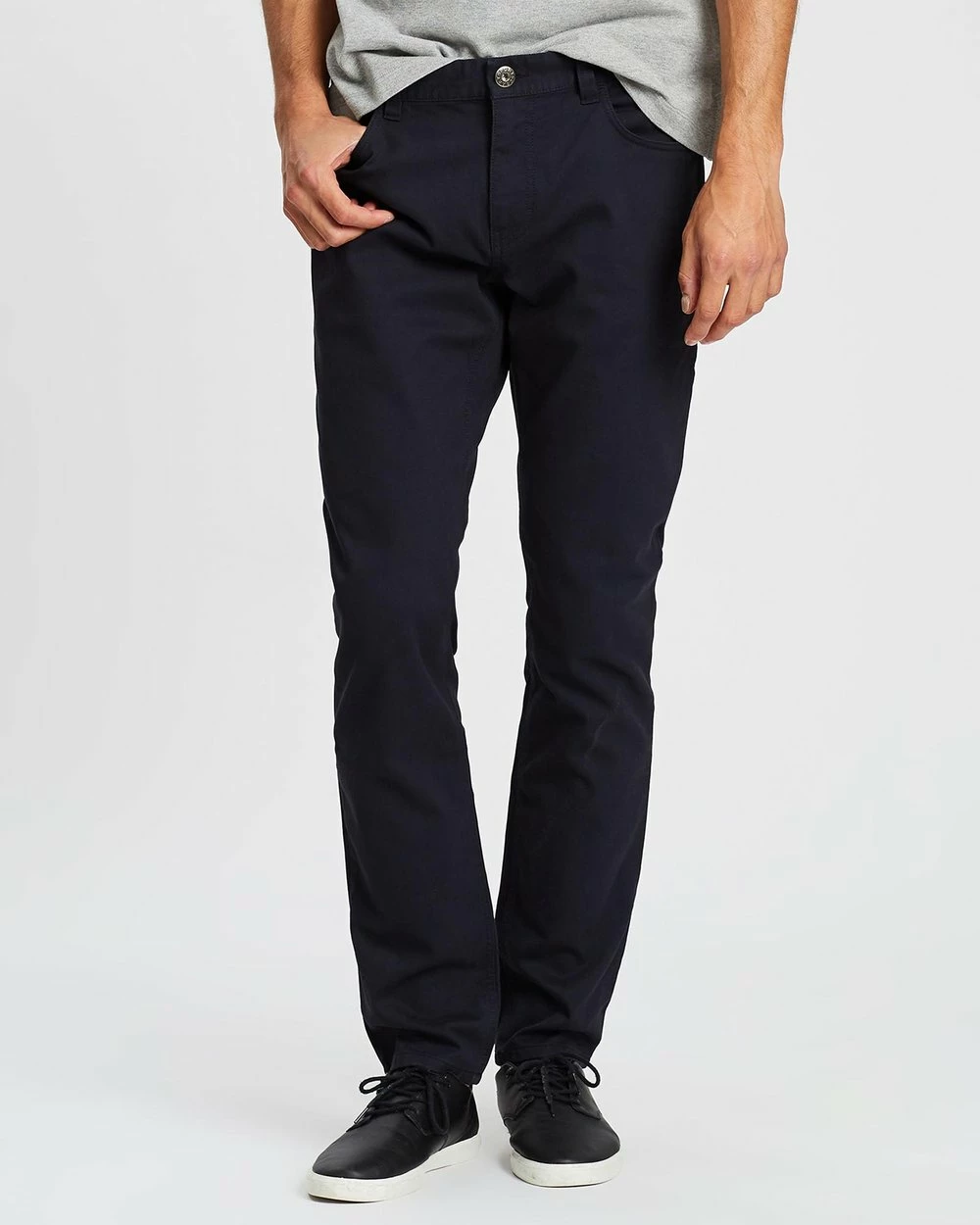 – Stretch cotton fabric – Tapered fit – Slim leg – 5-pocket styling – Classic front fly – Belt loops – Designed in Australia