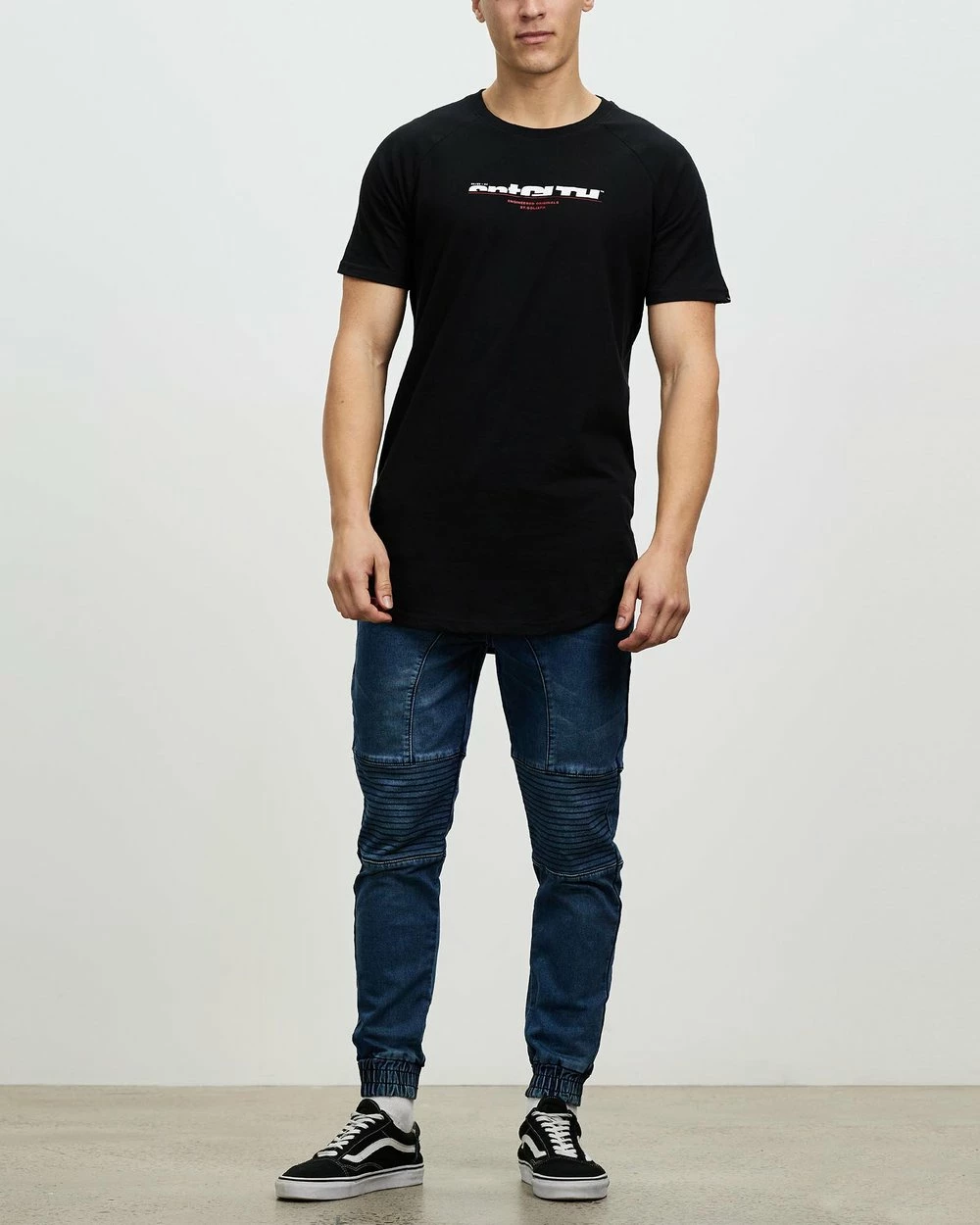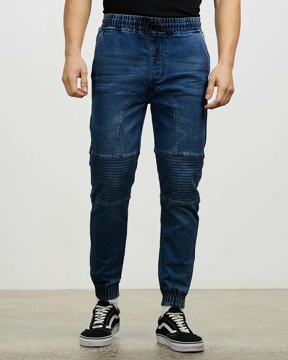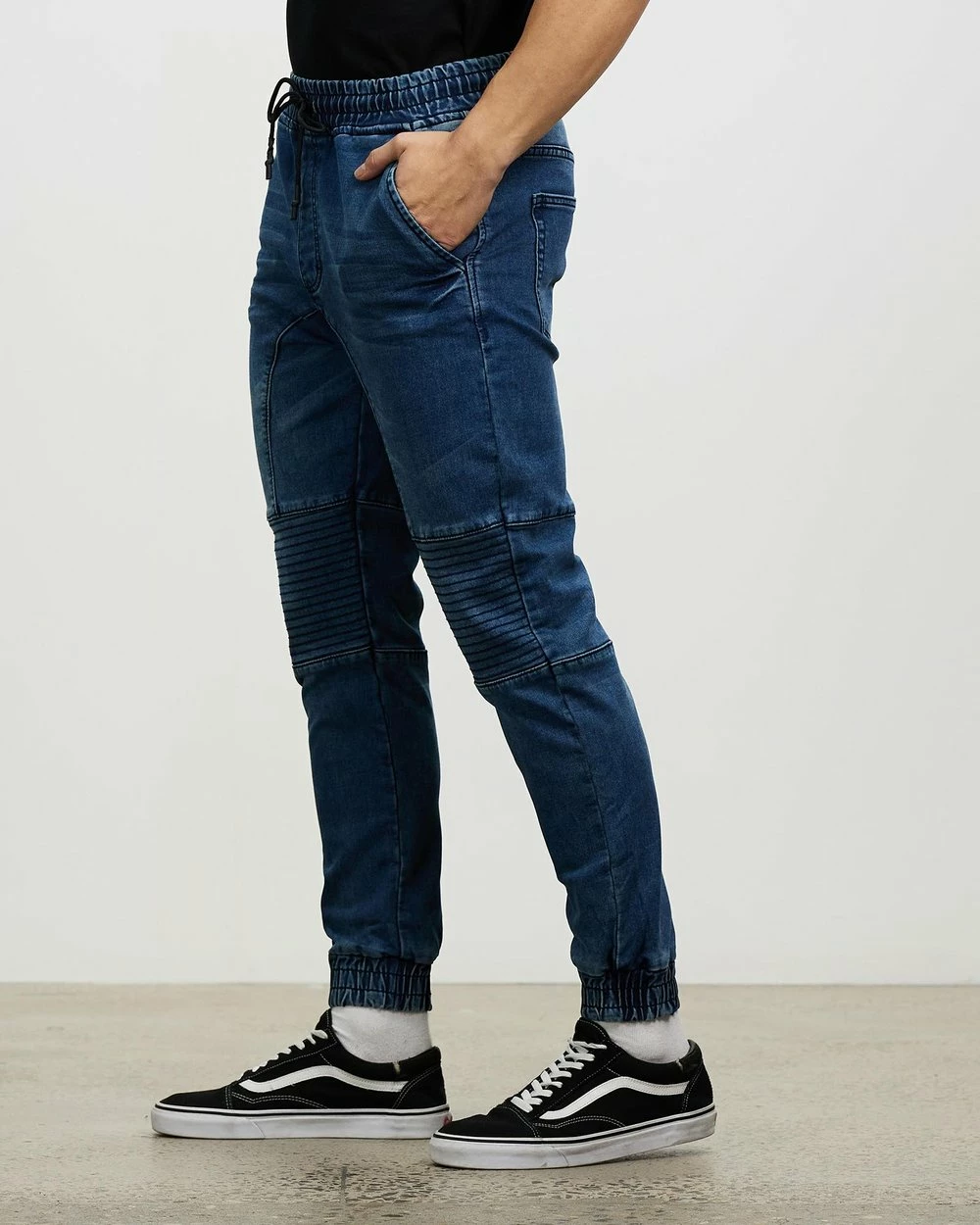 With four pockets and moto-style stitching at the knees, St Goliath‘s Region 3 Pants are the perfect denim-jogger hybrid.
