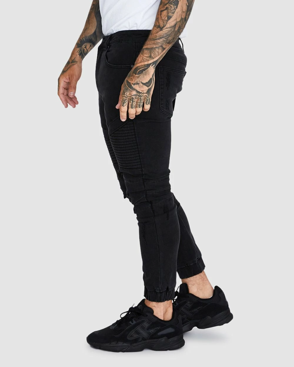 The Em 2 Cuffed Biker Pants by Standard are skinny pants with biker details, including quilted panels and biker stitch details. This style also features a regular rise, five pockets and cuffed hemline.