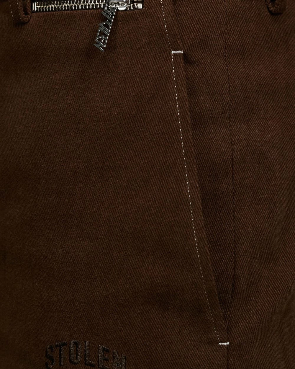 – Dual slash seam pockets to hips; single zip pocket to waistline; dual welt pockets to rear