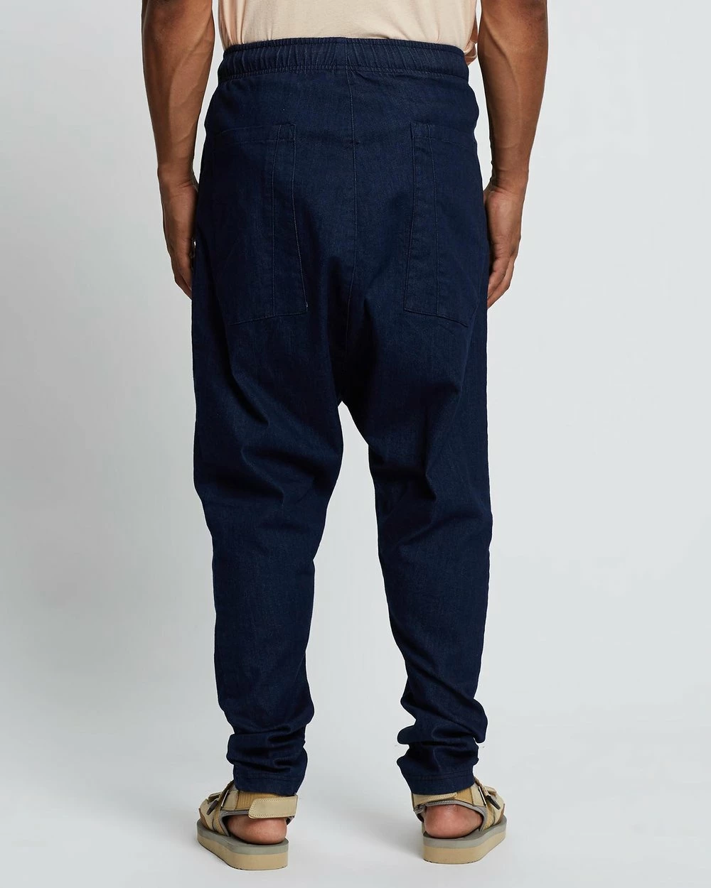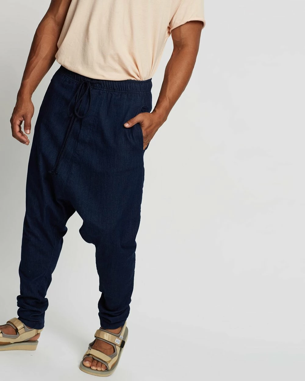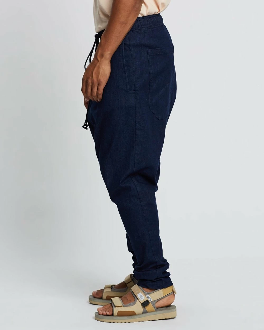 Australian label Surrounded By Ghosts form the definition of relaxed Australian apparel in subdued hues and sublte detail, spoken with an elevated European inflection. The Orpiment Denim Track Pants are a tactile addition made for nailing any seasonless street style with a deep indigo denim construction to elevate the relaxed silhouette.