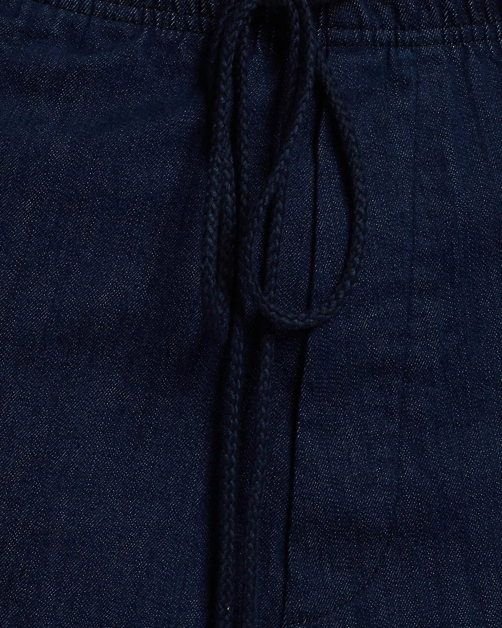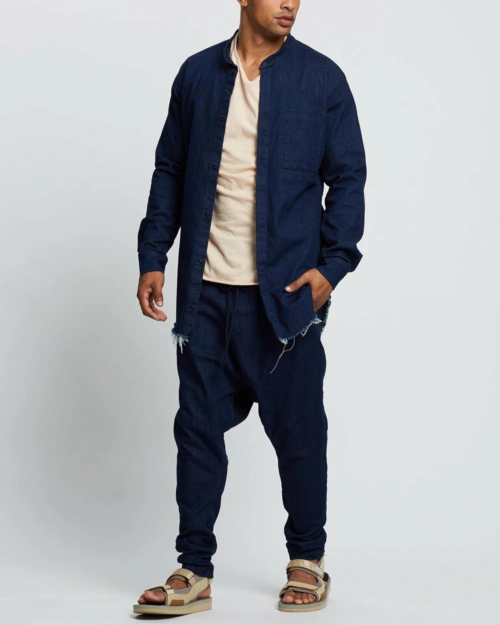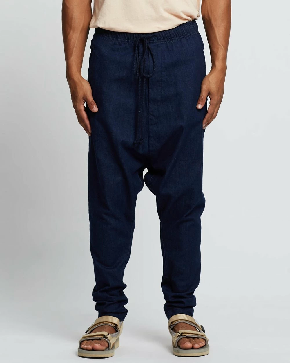 Australian label Surrounded By Ghosts form the definition of relaxed Australian apparel in subdued hues and sublte detail, spoken with an elevated European inflection. The Orpiment Denim Track Pants are a tactile addition made for nailing any seasonless street style with a deep indigo denim construction to elevate the relaxed silhouette.